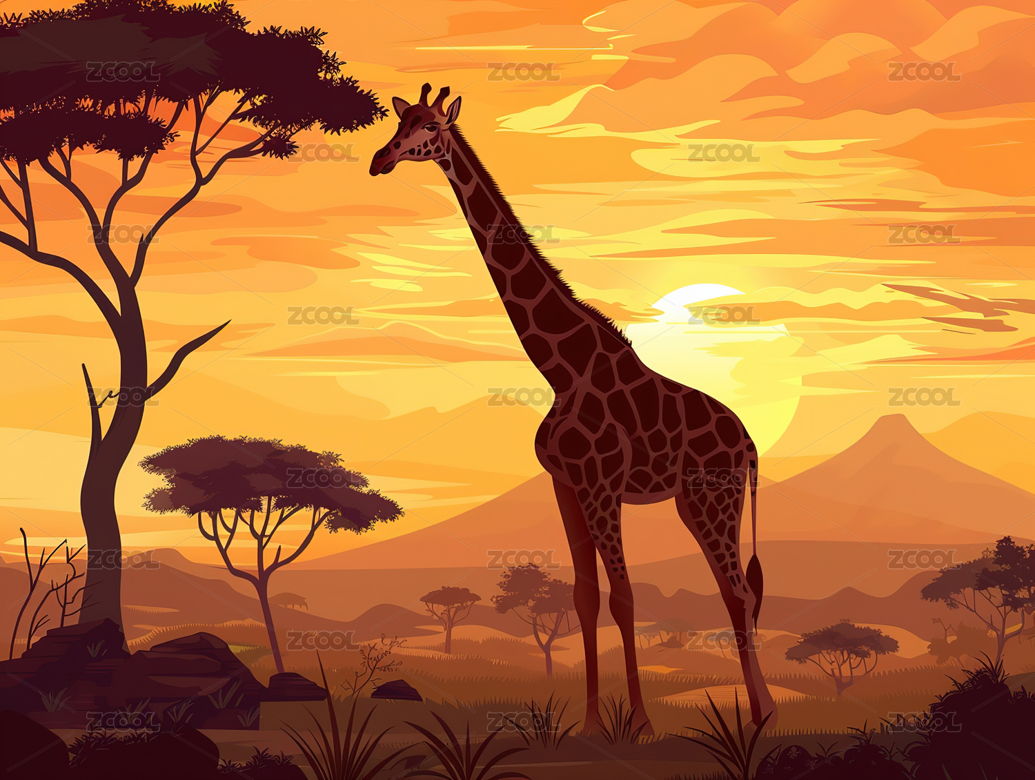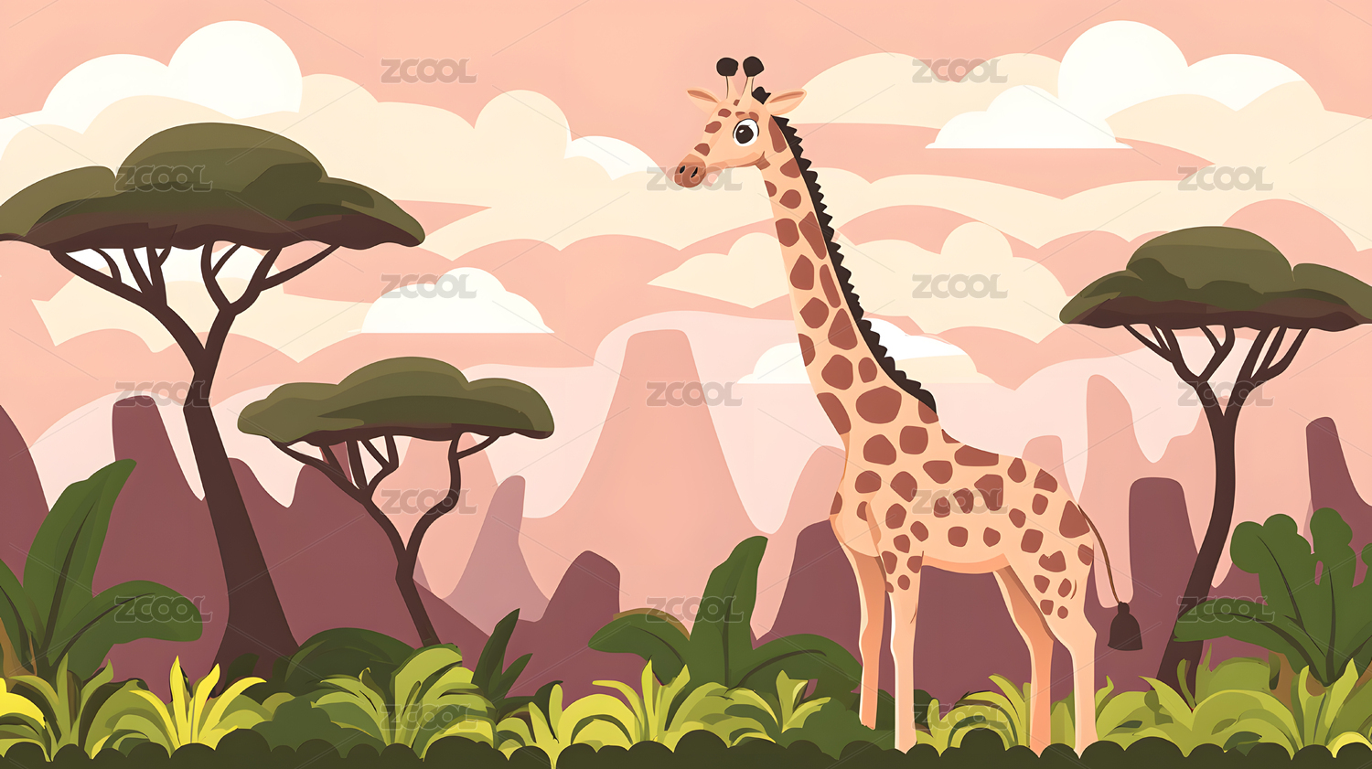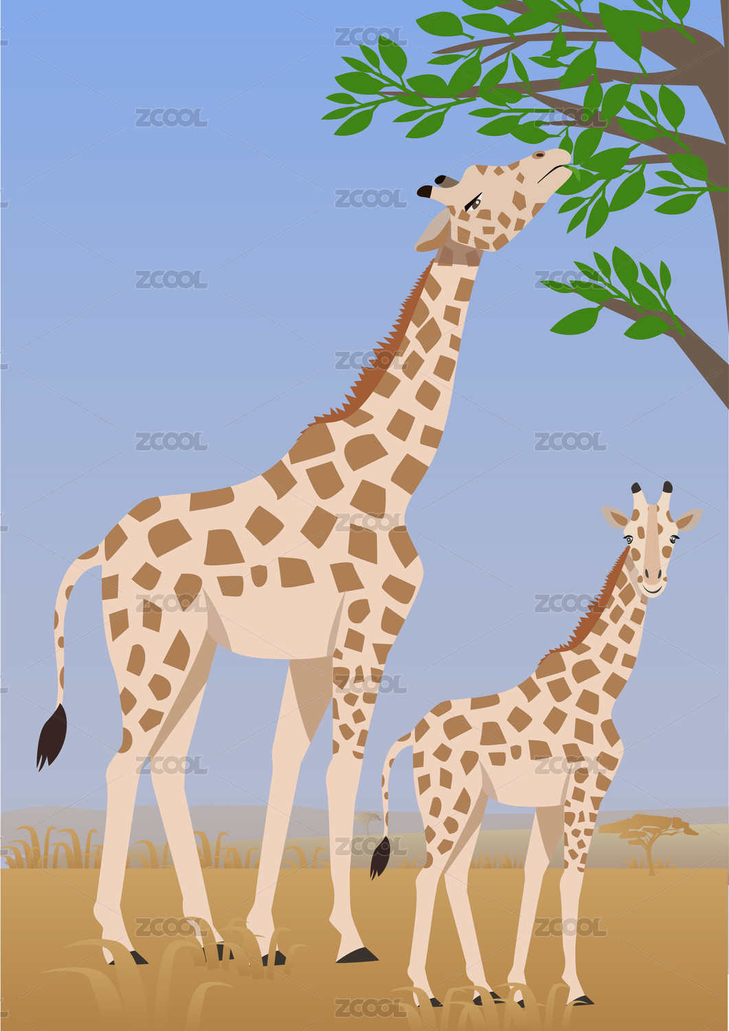 长颈鹿,插画,动物园,热带,灌木,自然,植物
