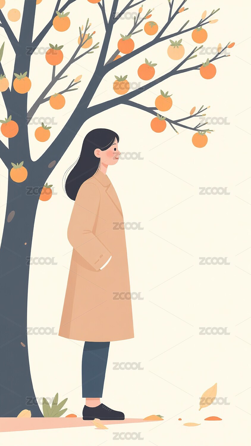 秋天,柿子,柿子插画,节气海报,海报,节气插画,柿饼,立秋,丰收,唯美