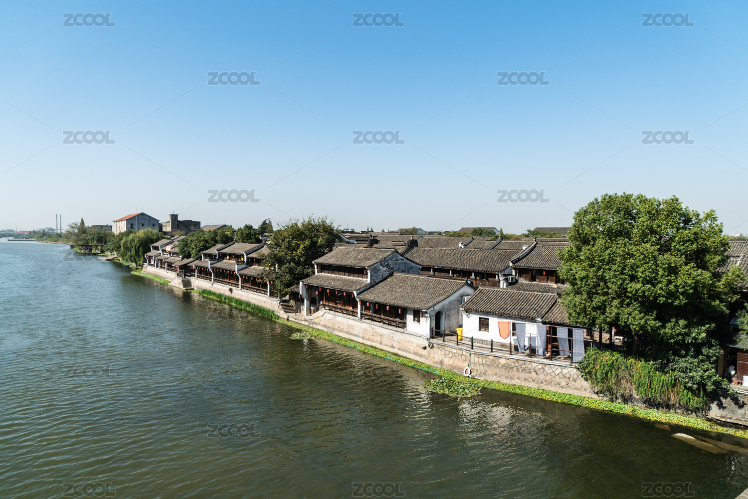 河畔中式建筑与桥梁景观-嘉兴秀州桥