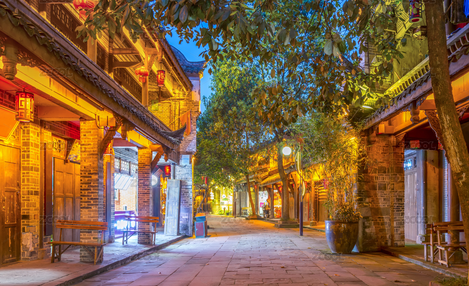 烟台所城里,夜景,街道,古城,古镇,商业街,房屋,建筑,砖墙,巷子