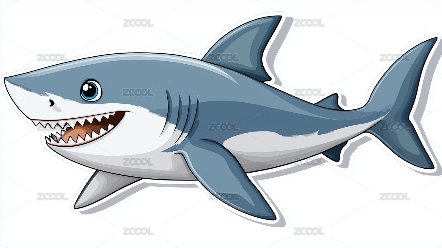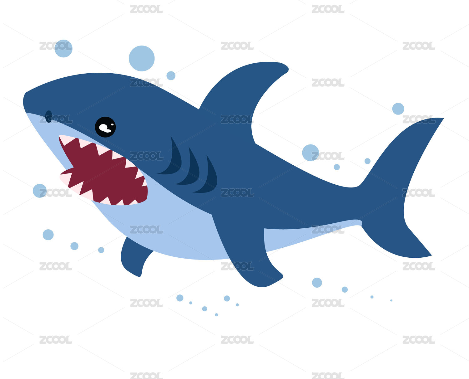 微笑鲨鱼卡通插画