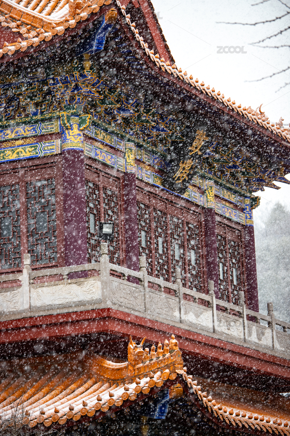 冬天雪后中国辽宁沈阳的山门寺古建筑