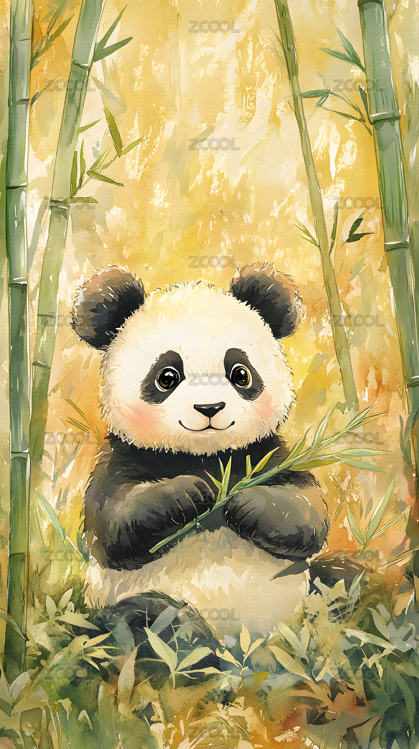 水彩卡通可爱吃笋的熊猫