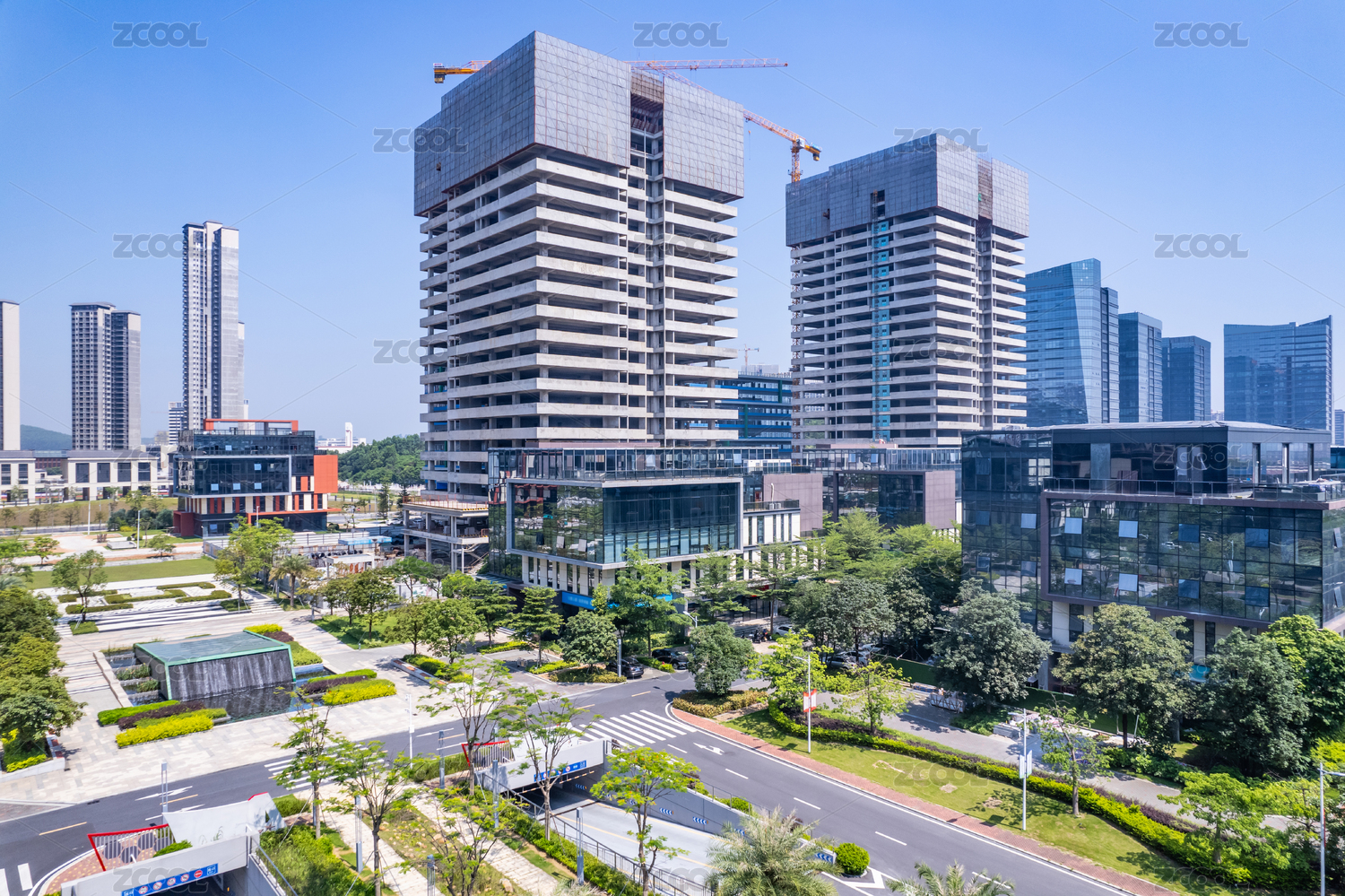 广州萝岗香雪商业建筑群城市天际线航拍全景