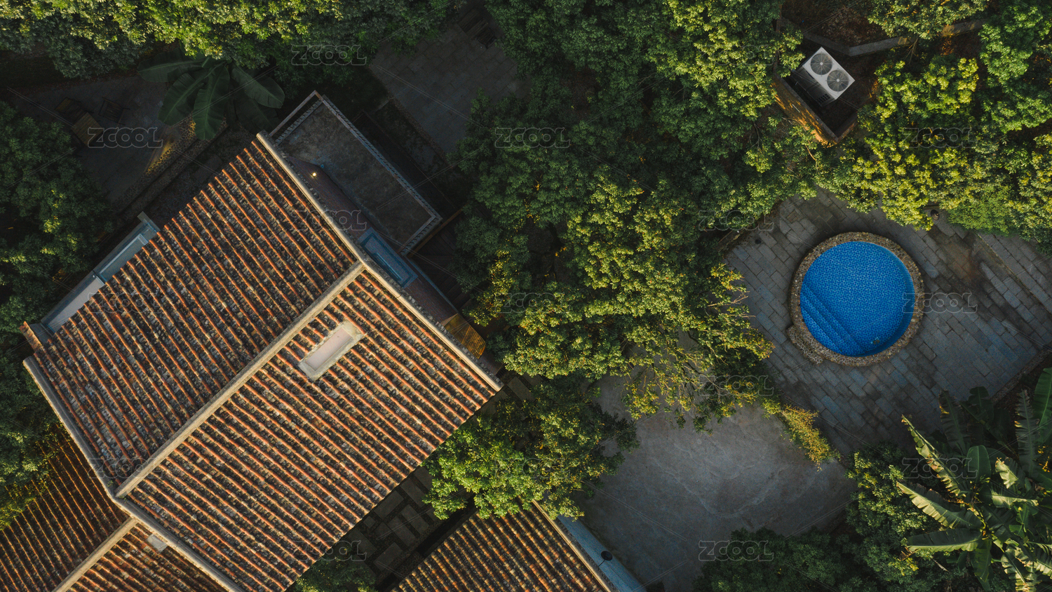 日落时刻的小院子