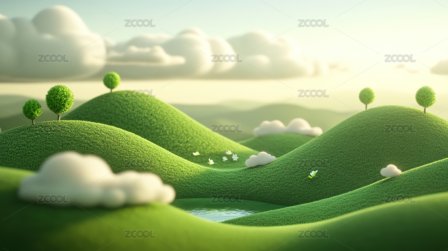 3d,背景,草,草地,草坪,插画,场景,春天,地平线,风景