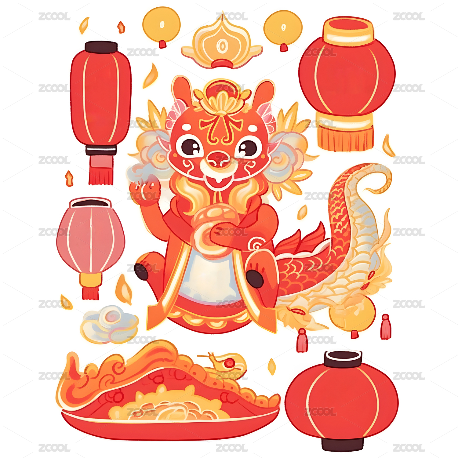 龙年春节插画元素