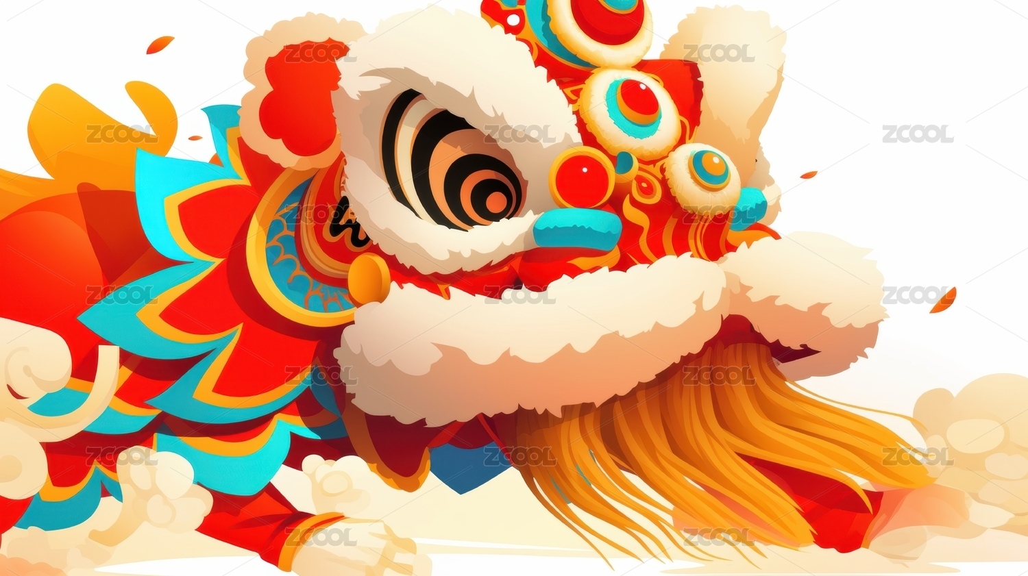 一只舞狮与绣球元素图案白色背景