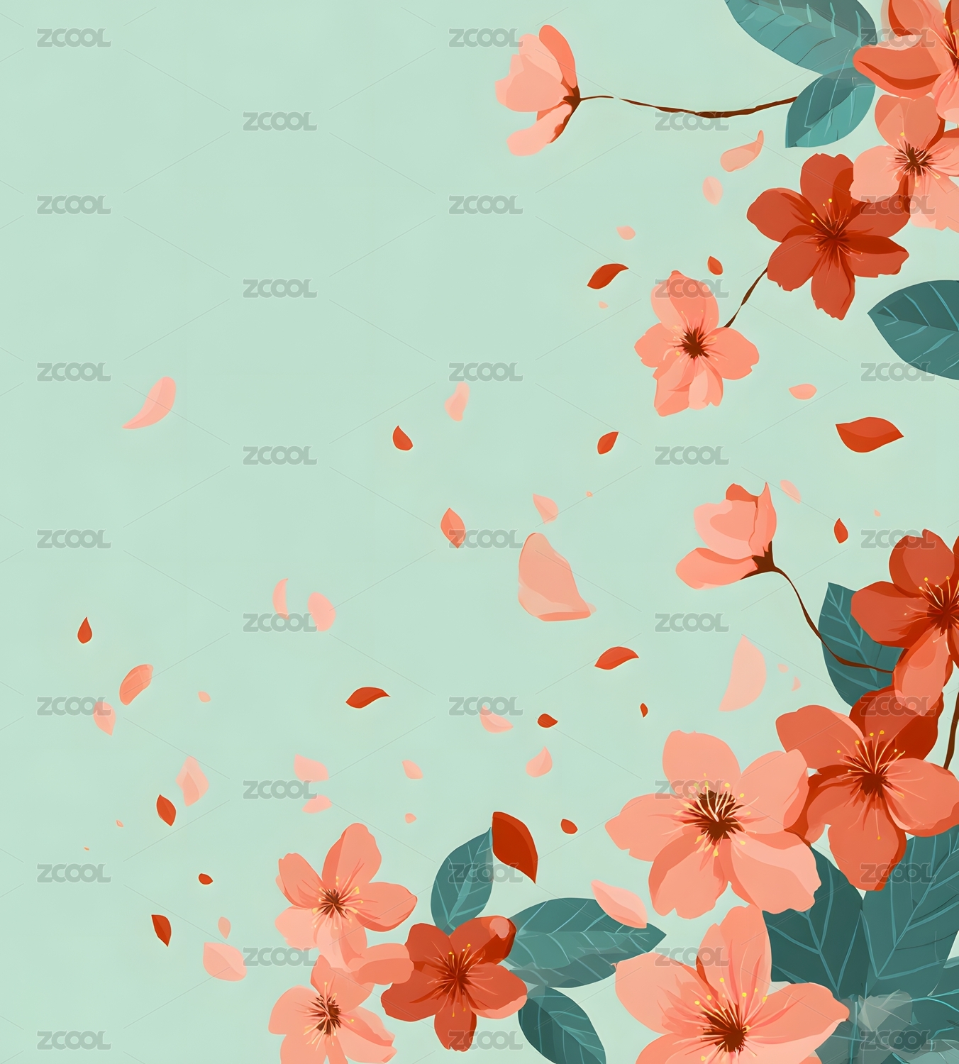 水彩晕染插画抽象纸张纹理背景粉色樱花