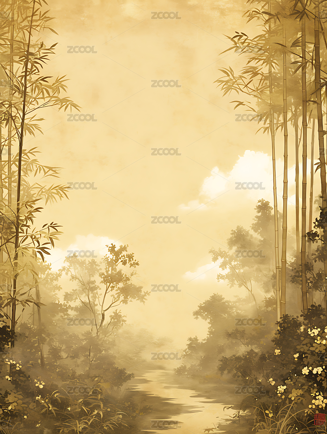 禅意淡雅金色竹
