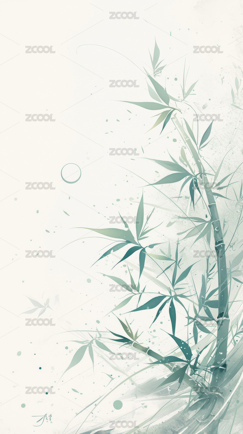 竹叶飘落的水墨意境