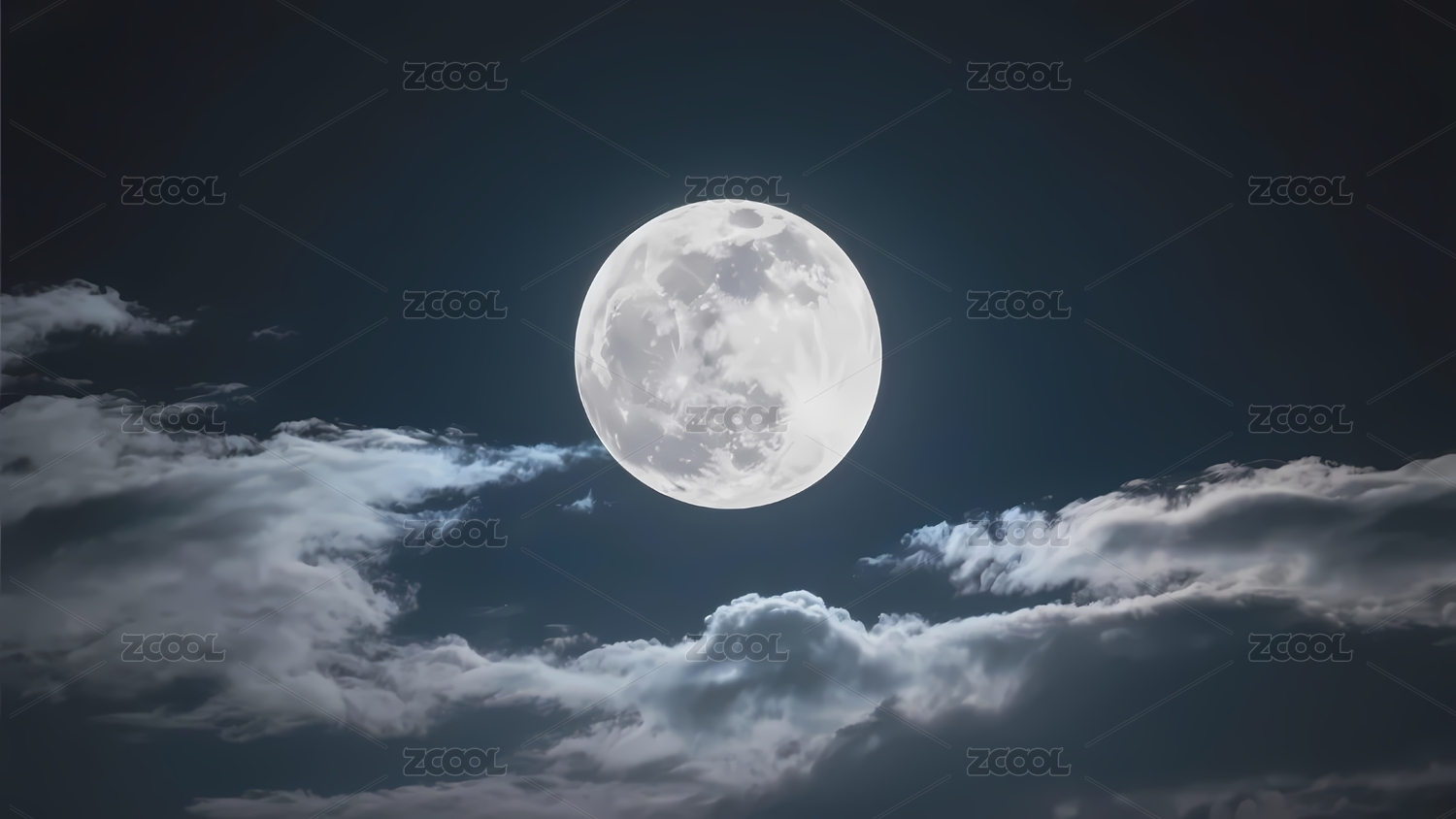 夜空中的满月与云层