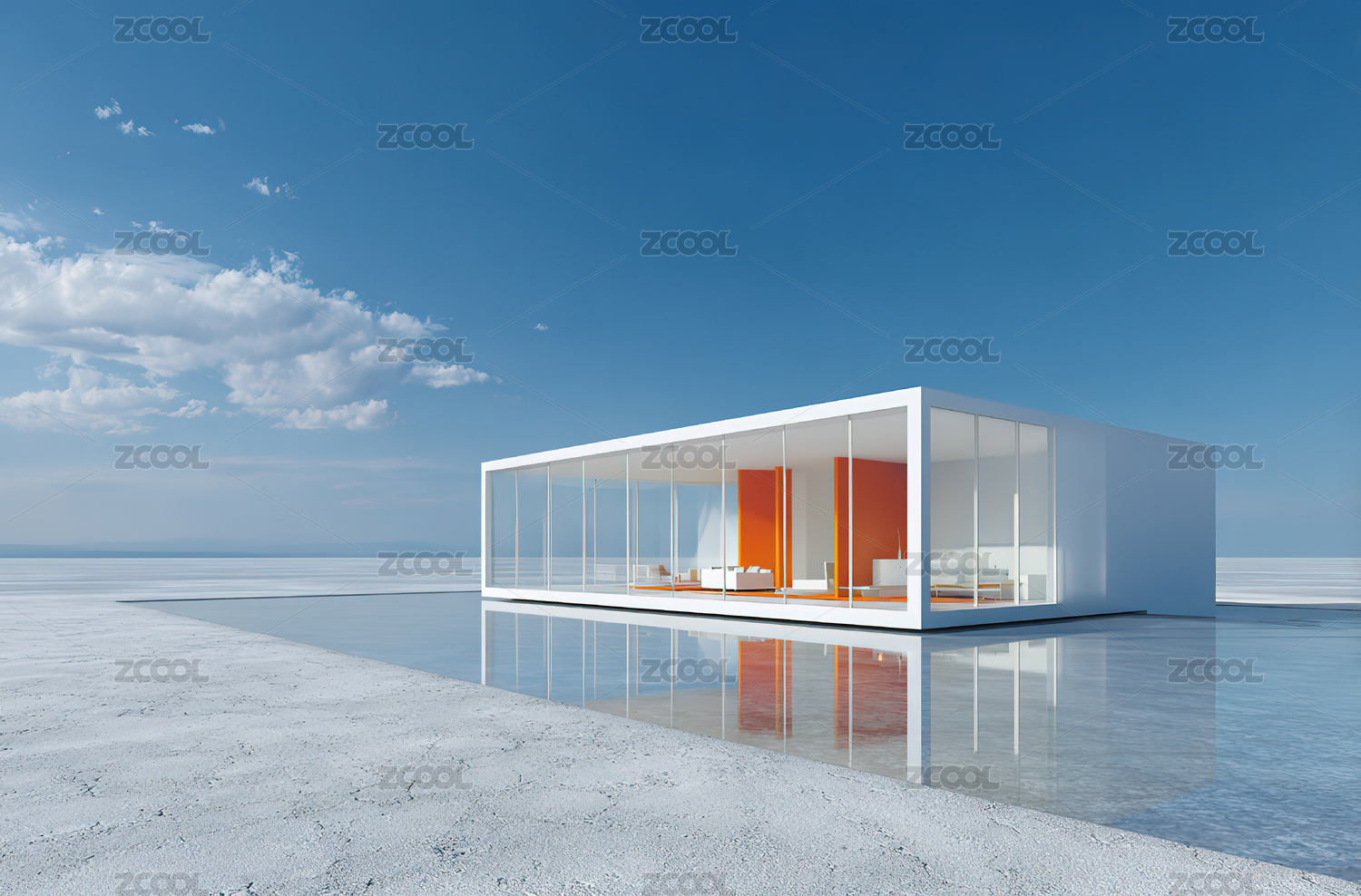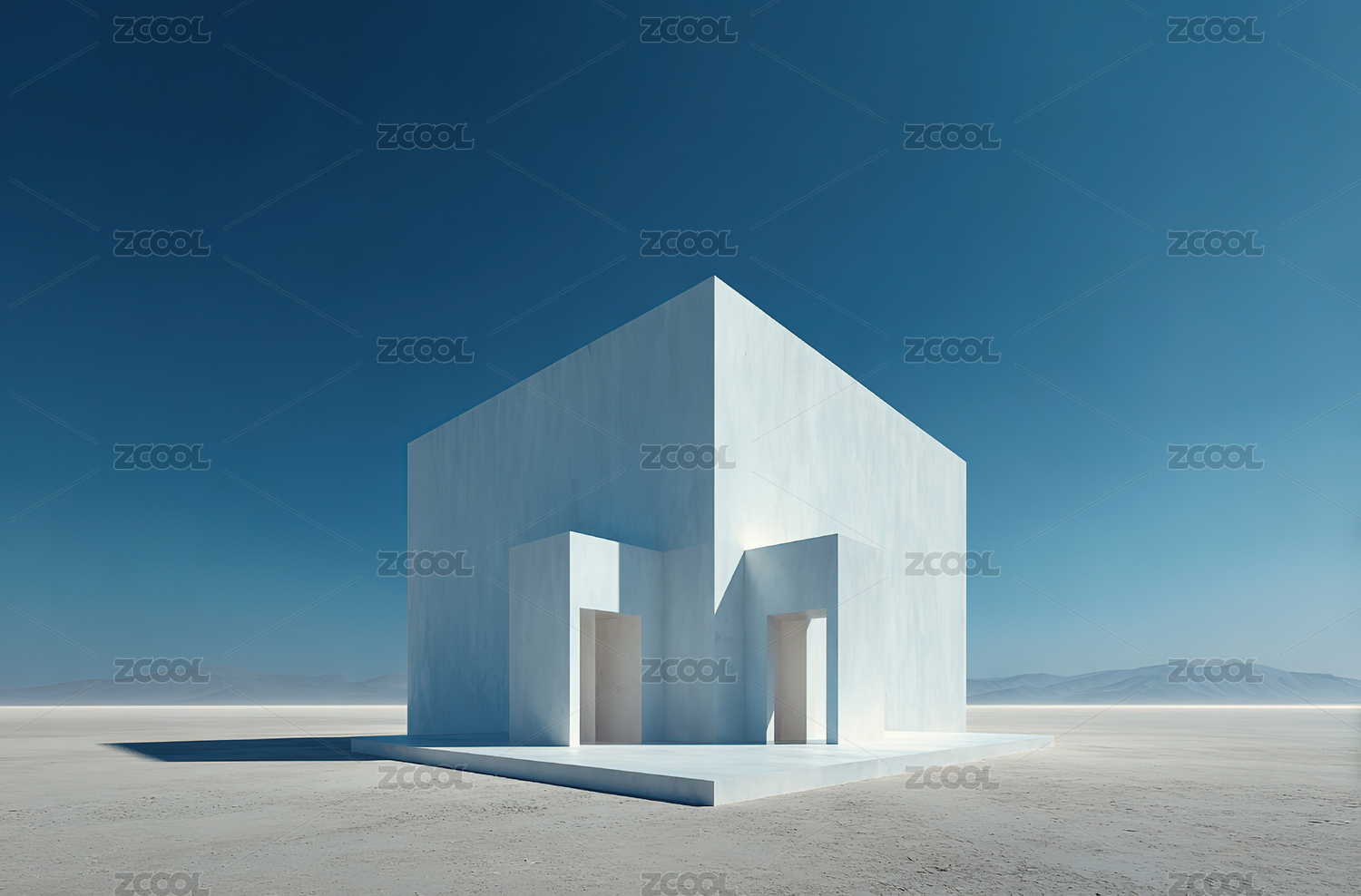 设计,光影,建筑,房屋,场景,极简主义,沙漠,孤岛,3D渲染,现代