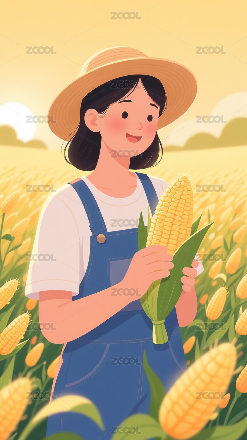 秋天,景色,插画,绘画,玉米,采摘,卡通,女孩,丰收,船