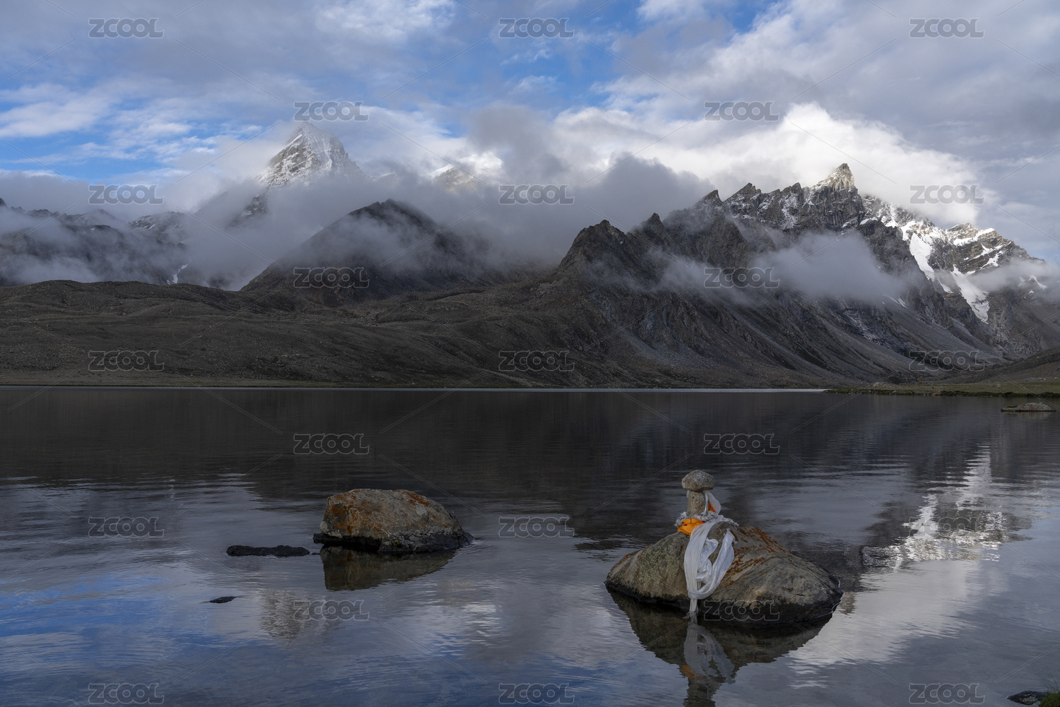 中国,西藏,乌云,高原,湖水,雪山,喜马拉雅,早晨,阳光,云雾