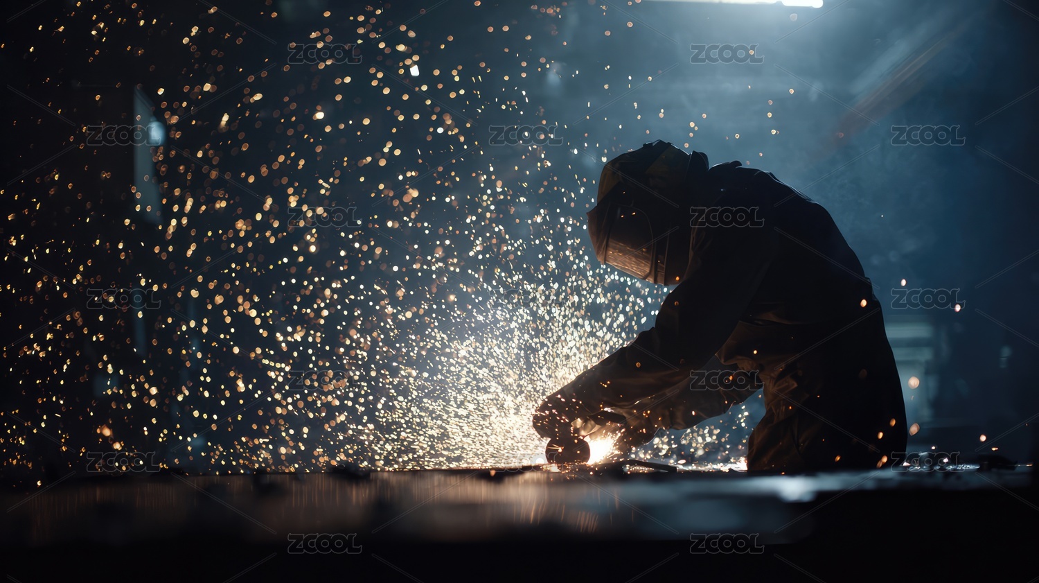 焊接工人强光效工厂作业场景