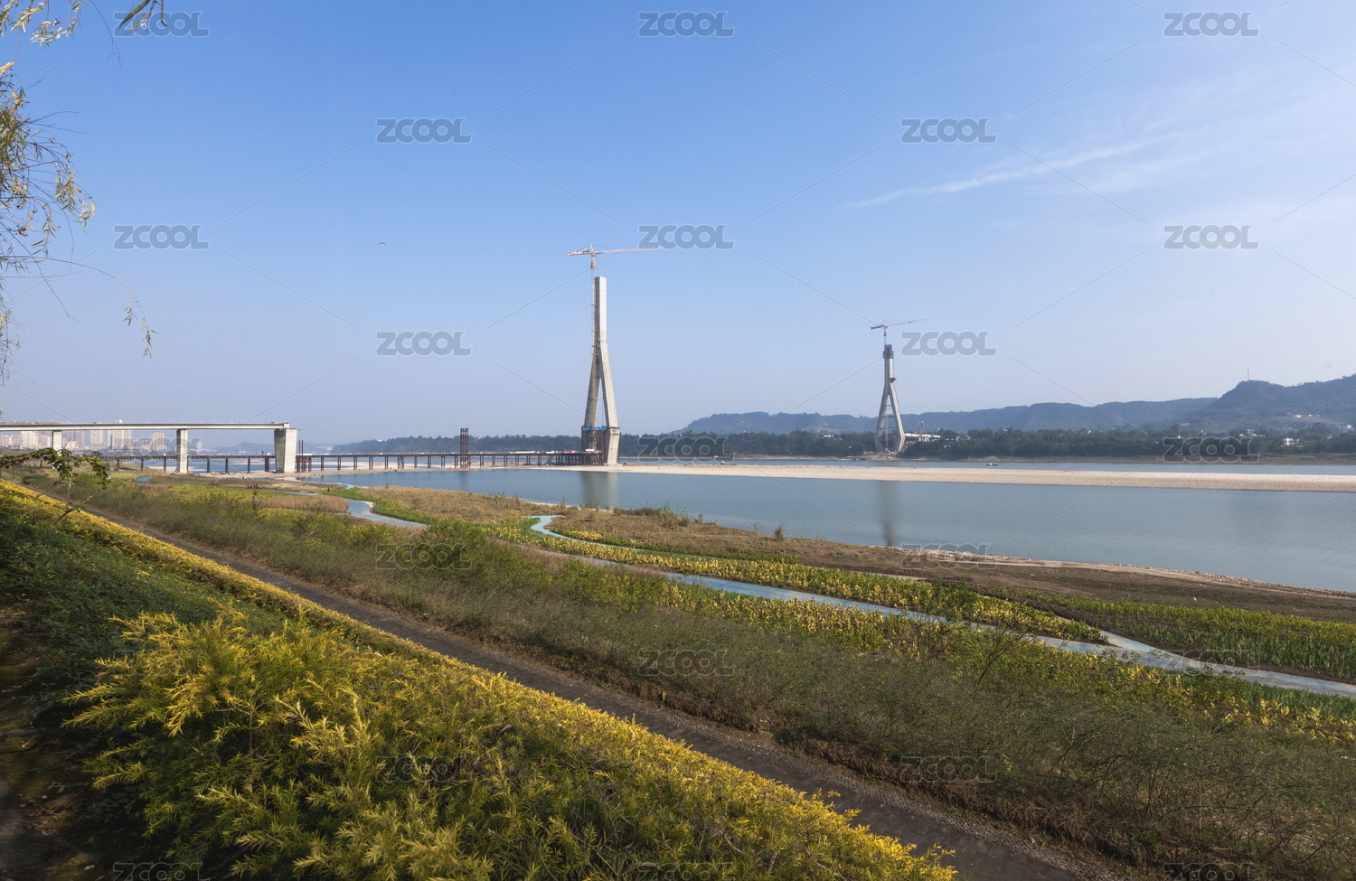 自然风光,中国,重庆,广阳岛,广阳坝,春季,白天,大桥,长江,礁石