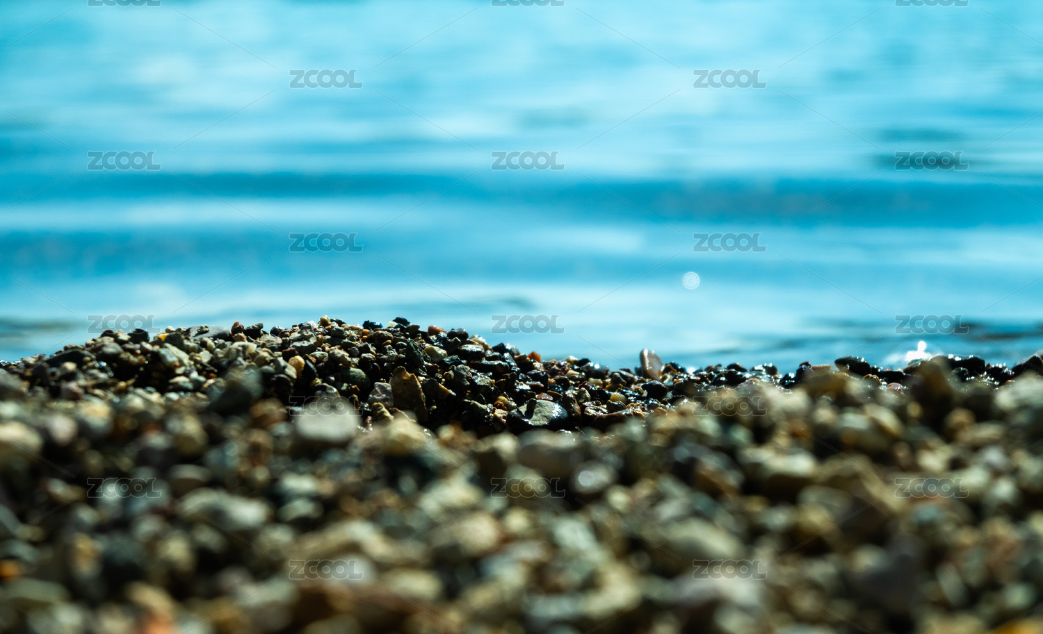 蓝天下海洋卷起的海浪拍打在海岸上特写