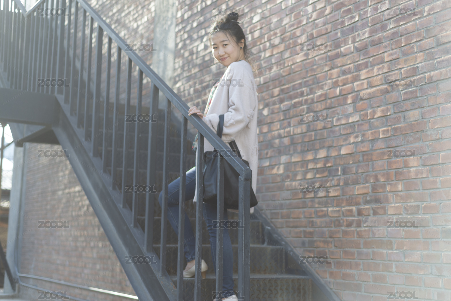 年轻女白领在楼梯上