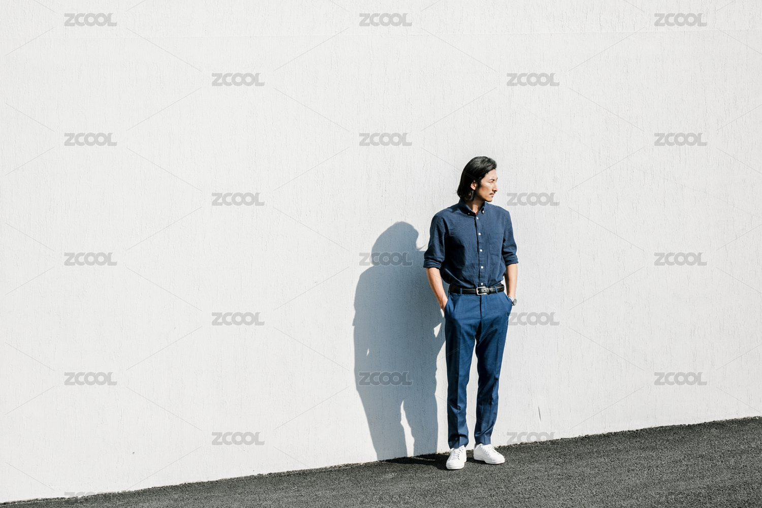 成熟的男士站在白墙前