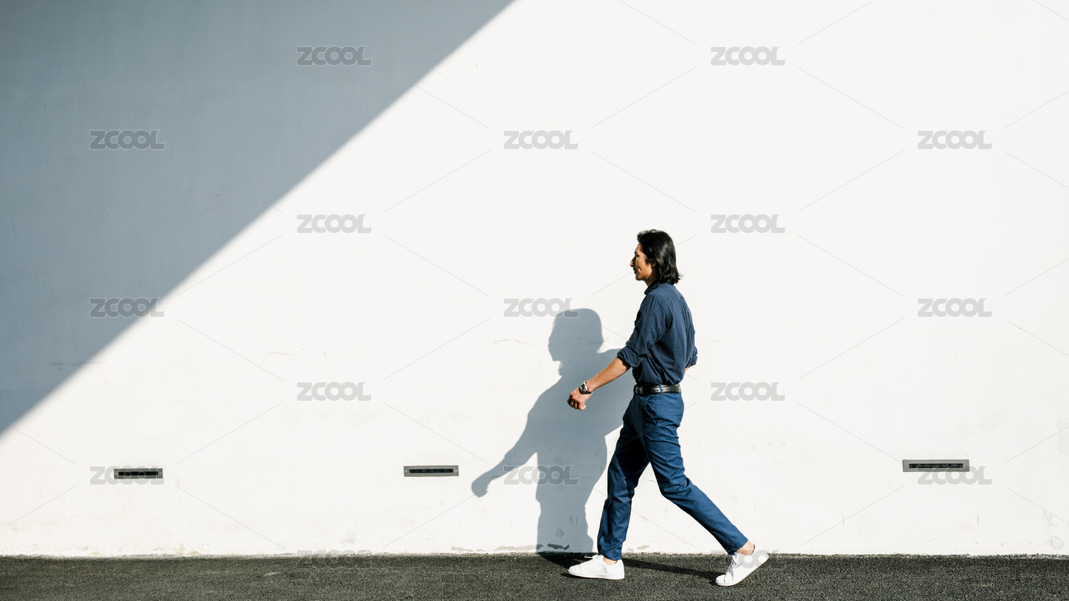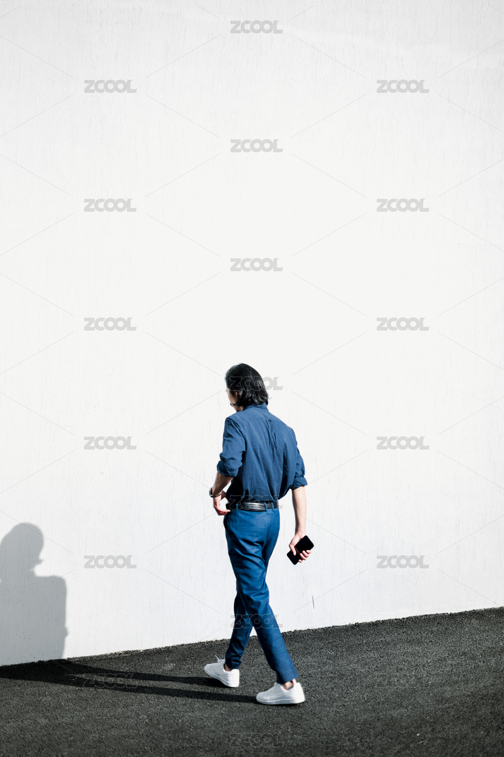 穿衬衣的亚洲男士走在路上