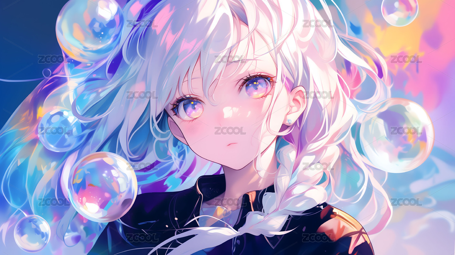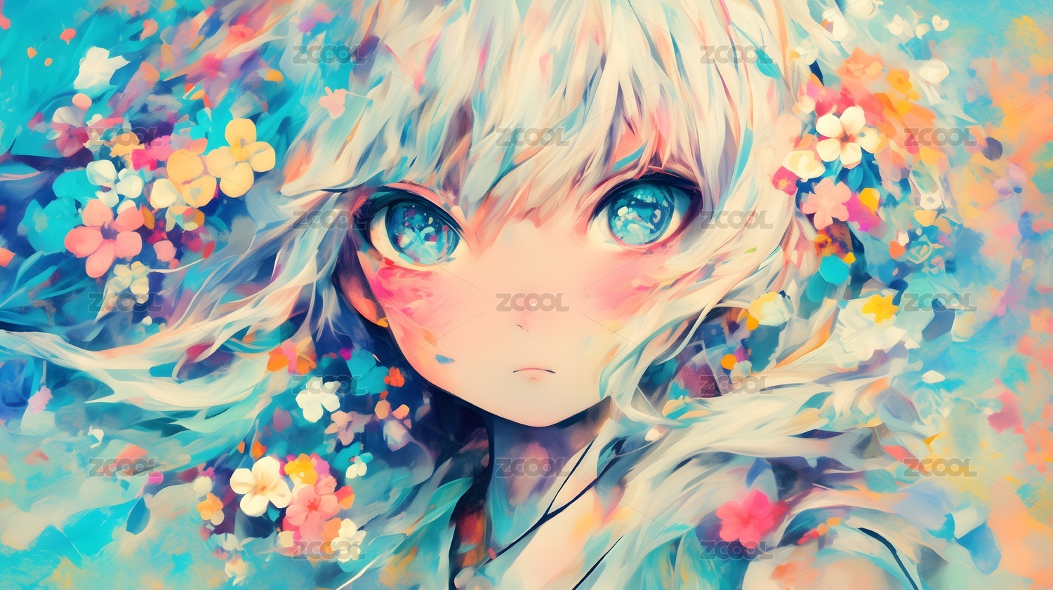 可爱的动漫女孩缤纷的色彩壁纸背景