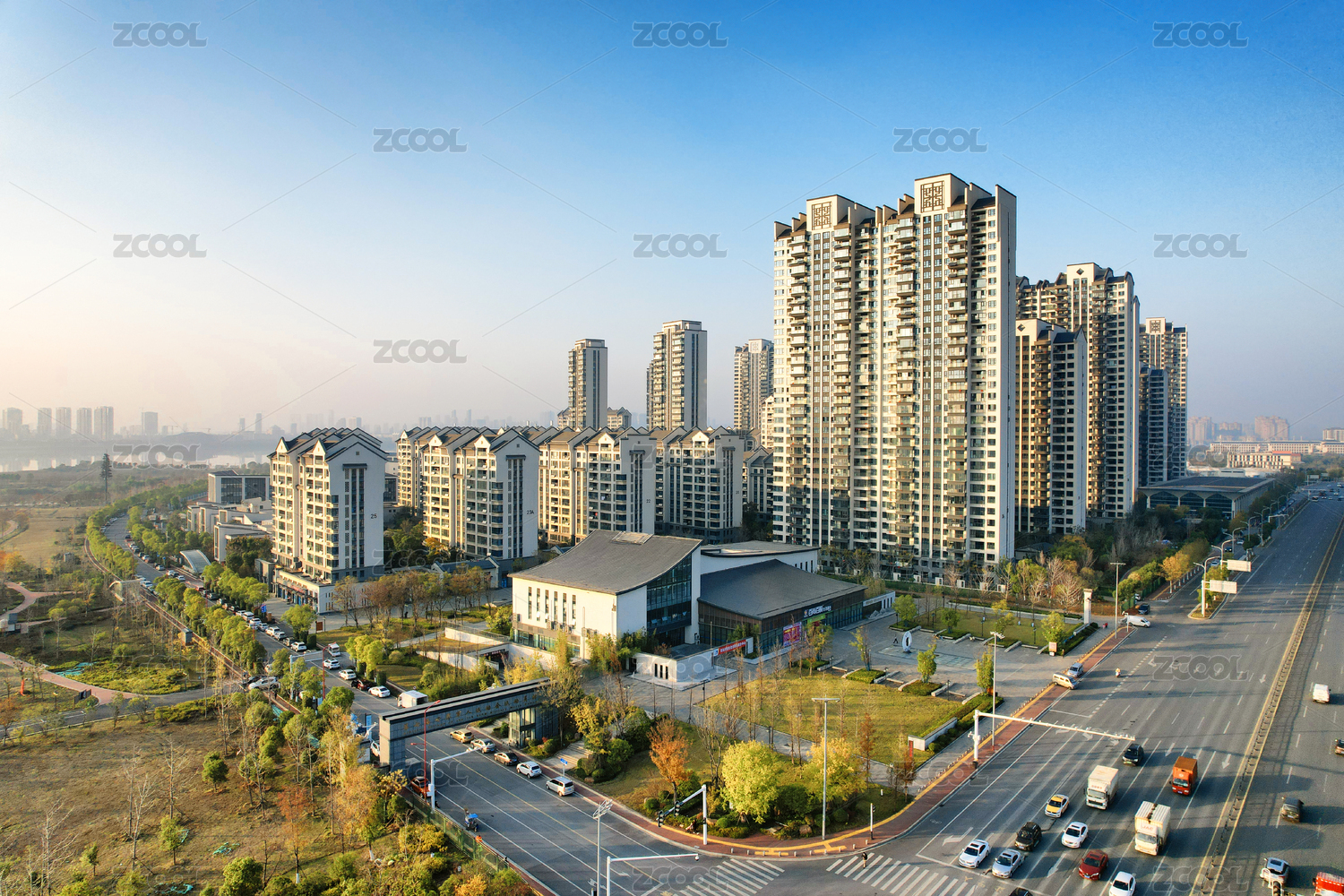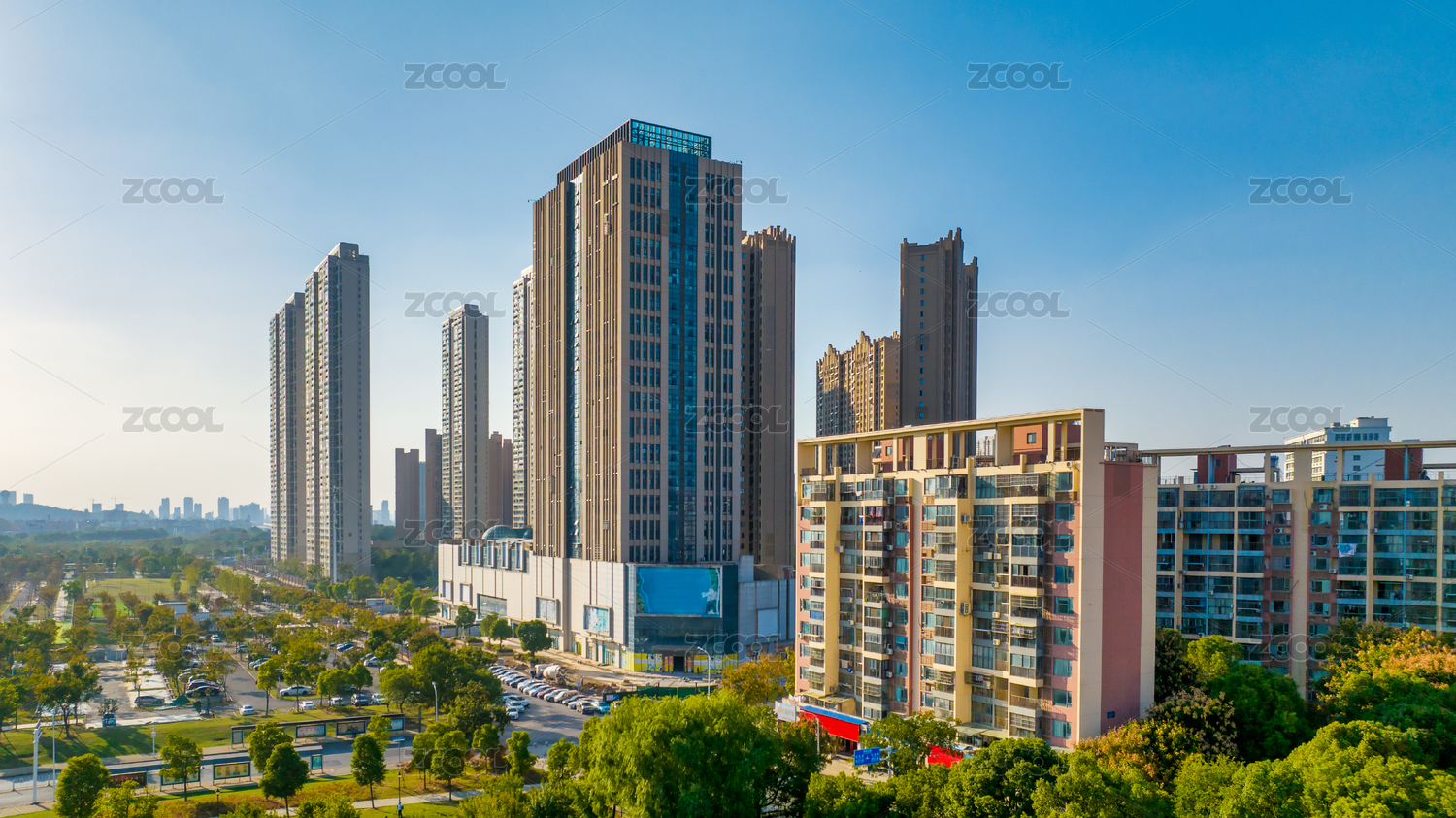 城市社区小区楼房居民楼经济房产楼盘地产航