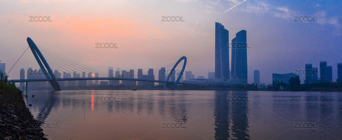 南京眼步行桥傍晚黄昏时的景色