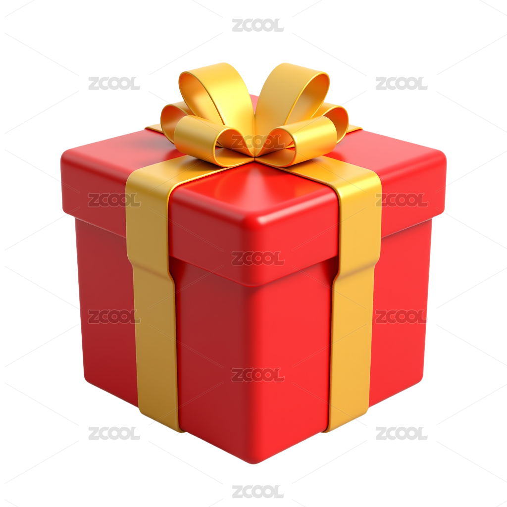 红金色礼物盒新年促销喜庆3d立体插画元素