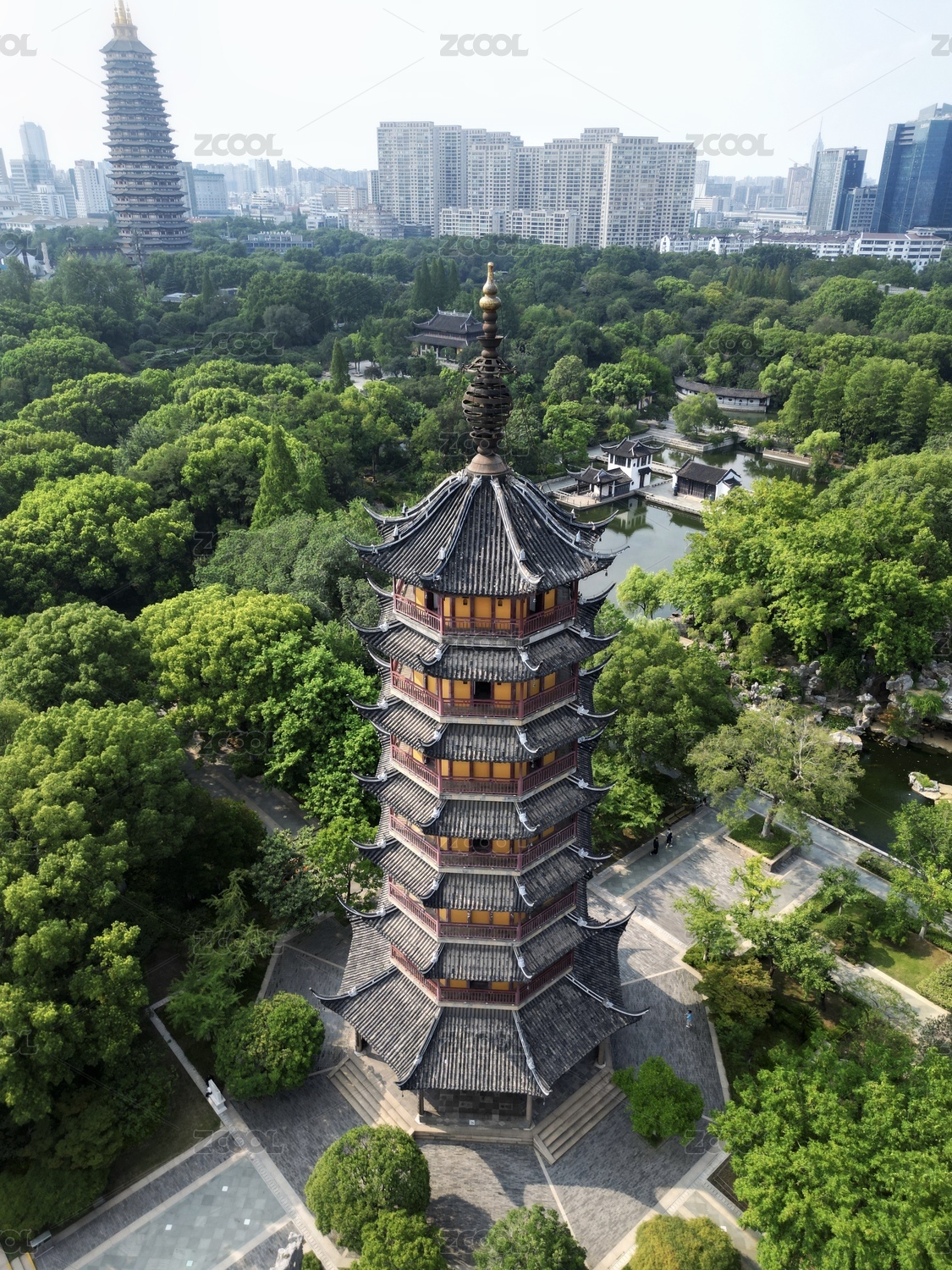 航拍,俯瞰,公园,地标,佛塔,仿古,休闲,绿化,阴天,佛教