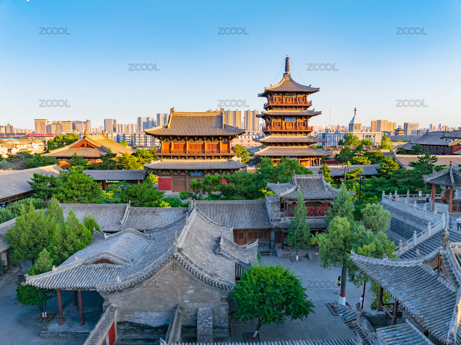 从华严宝塔俯瞰山西大同华严寺建筑风光