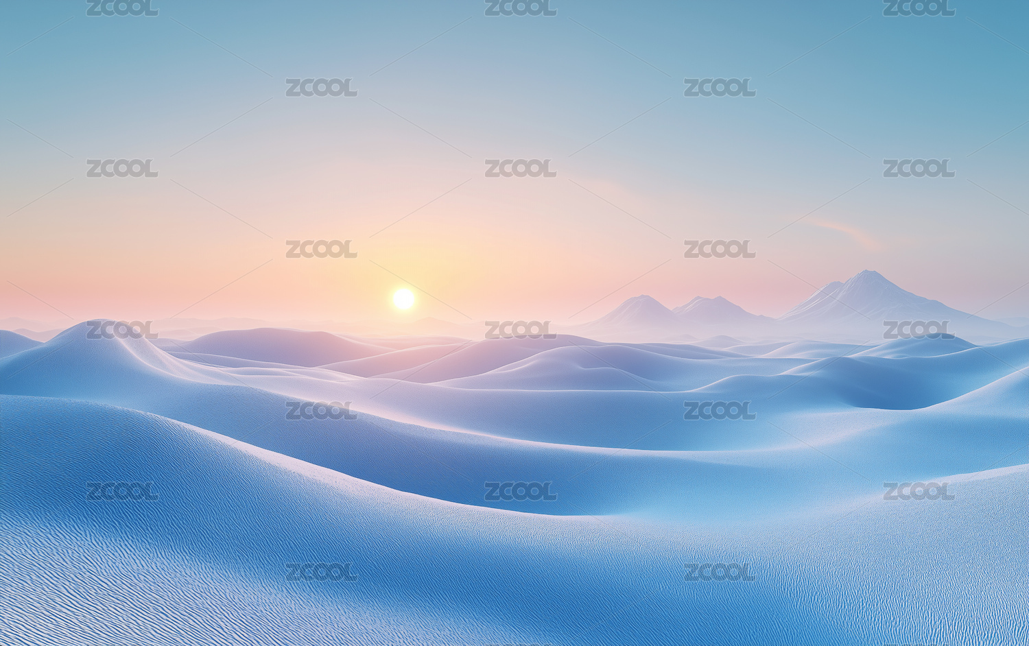 冬季起伏地形雪景与灿烂晚霞天空背景