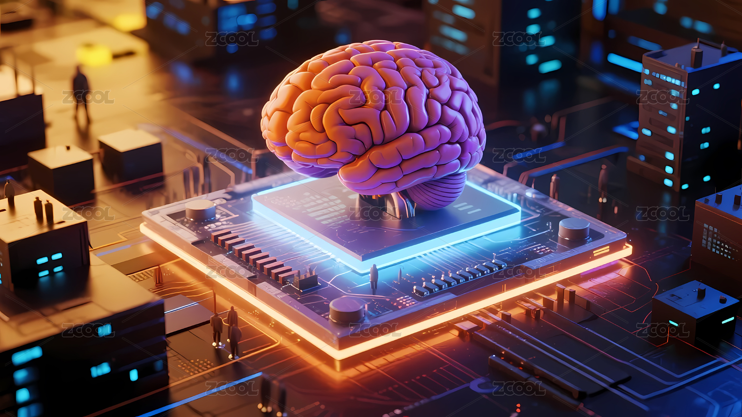 人工智能, 人脑, 电路板, 网络, 芯片, 数据, 创新, 蓝色, 神经网络, 光线