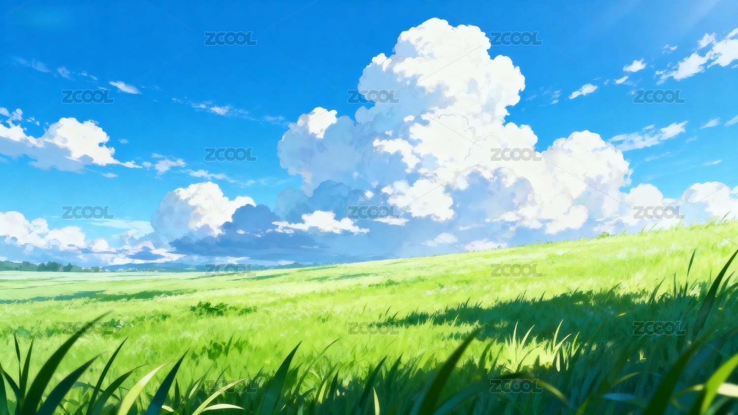 卡通风景,风景插画,梦幻场景,童话风格,自然景观,山水画,树木,蓝天,白云,卡通树