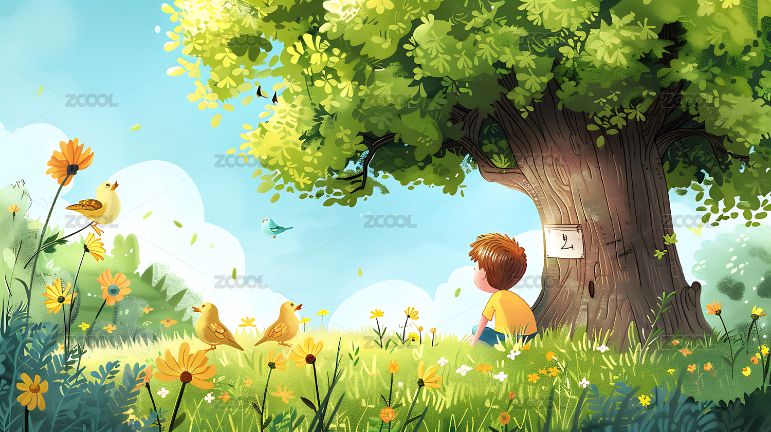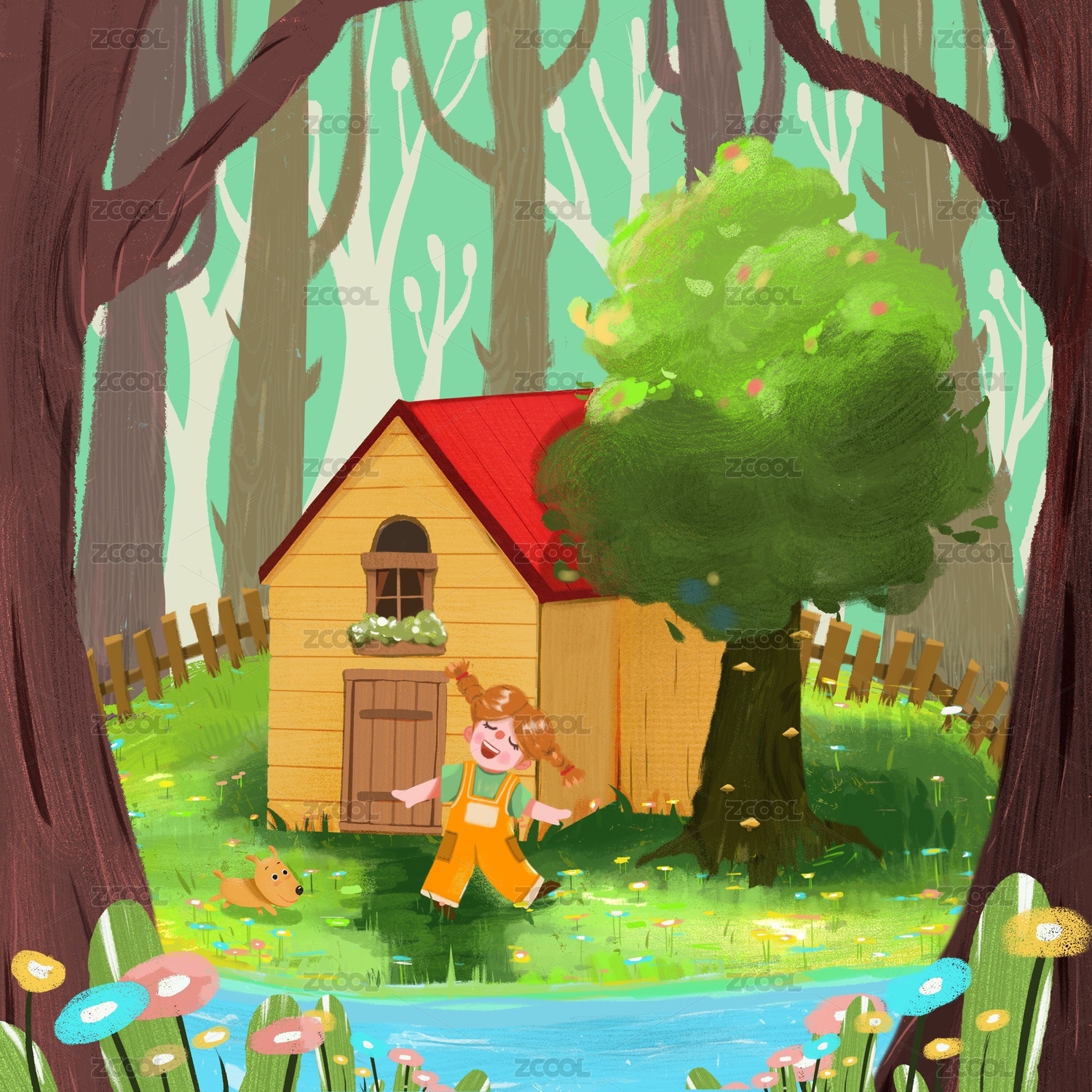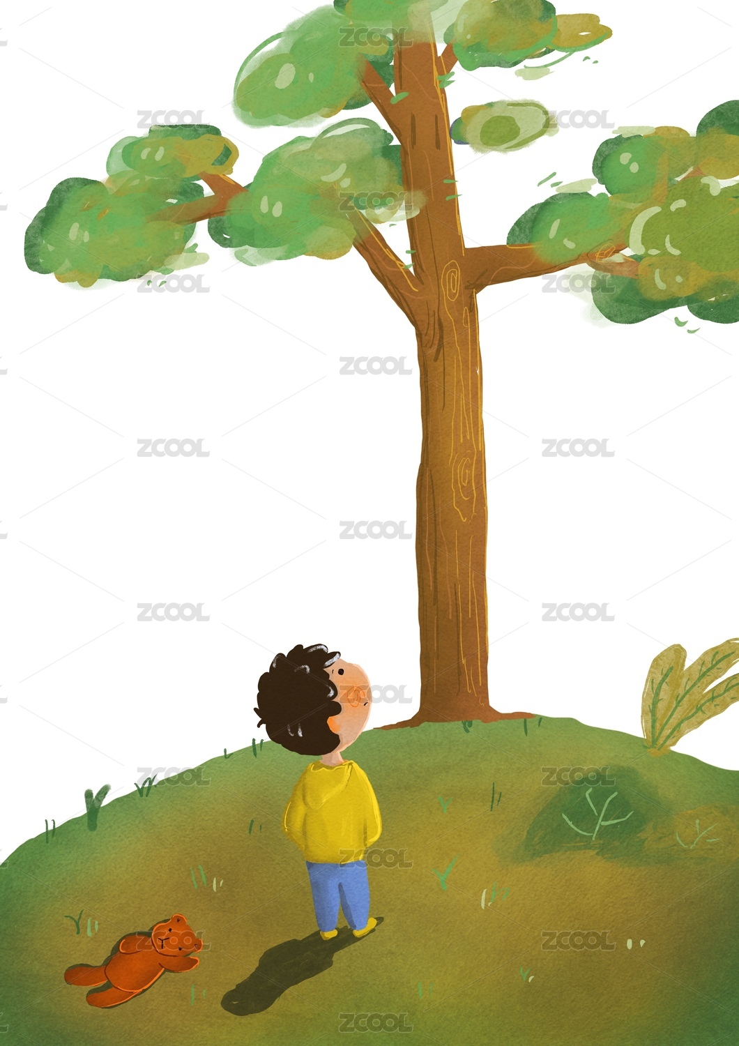 低幼,绘本,逃课,儿童,男孩,树屋,插图,插画