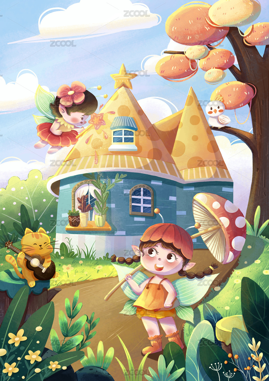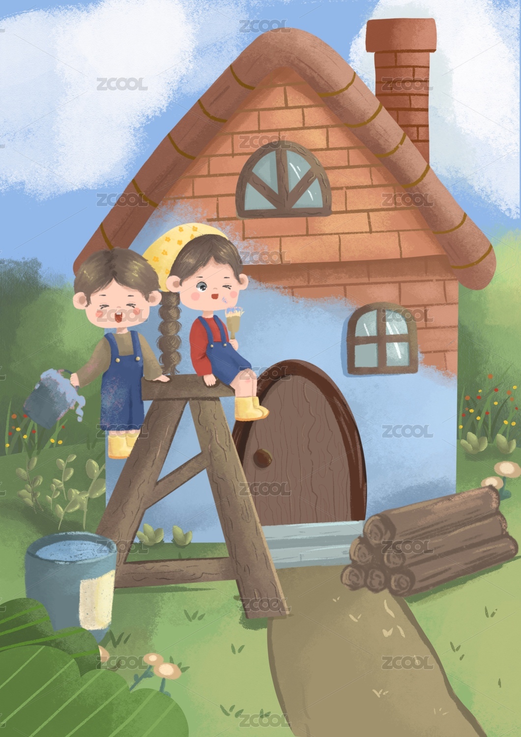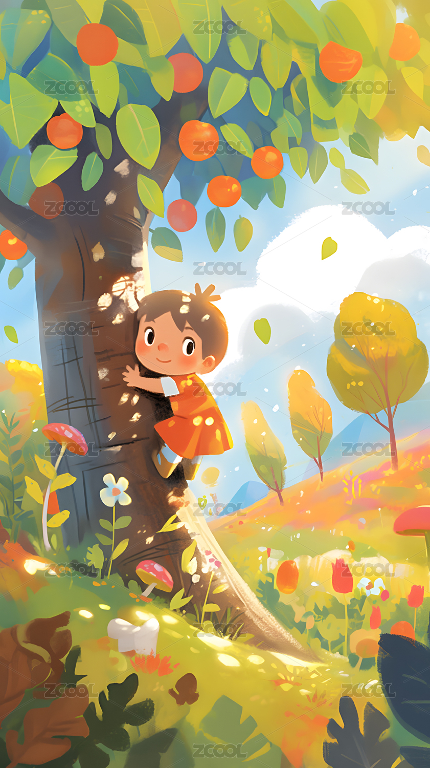 低幼,绘本,逃课,儿童,男孩,树屋,插图,插画