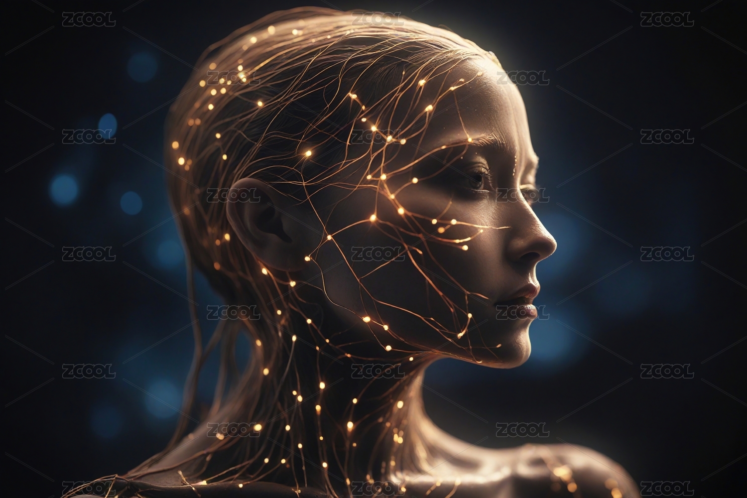 未来,智能,女性,机器人,电子,电路,线条,光点,蓝色,皮肤