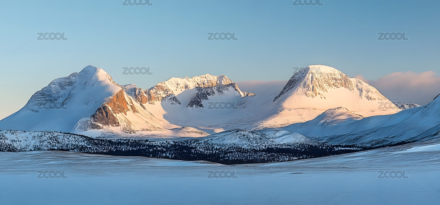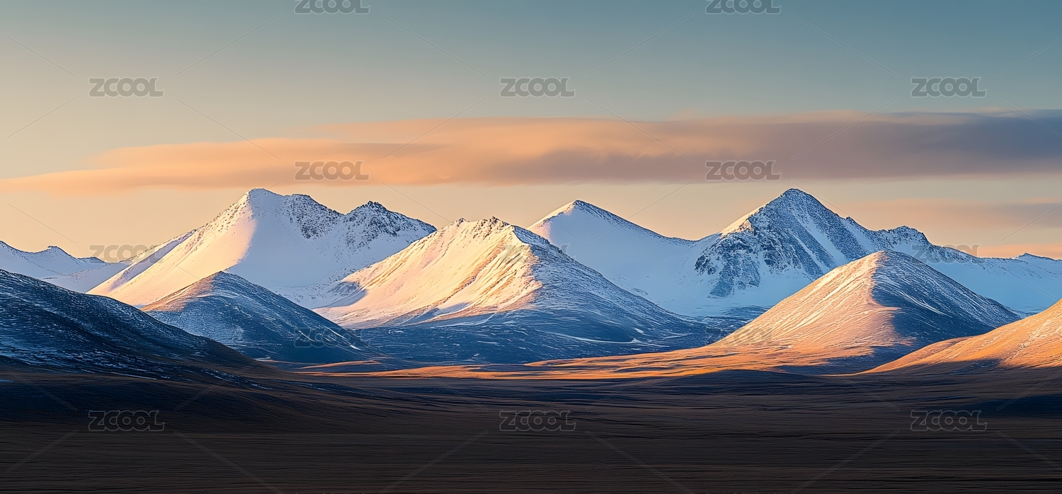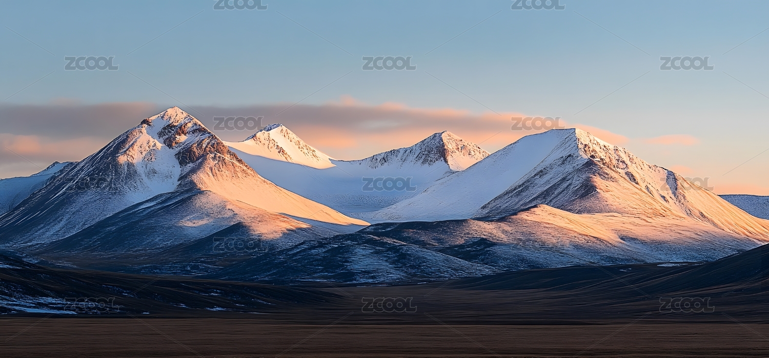 雪覆山脉与旷野的黄昏壮丽景观