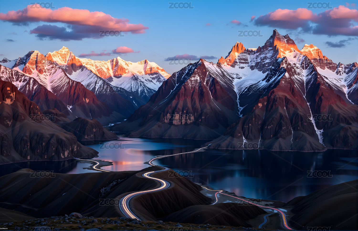 雪山湖泊与蜿蜒公路