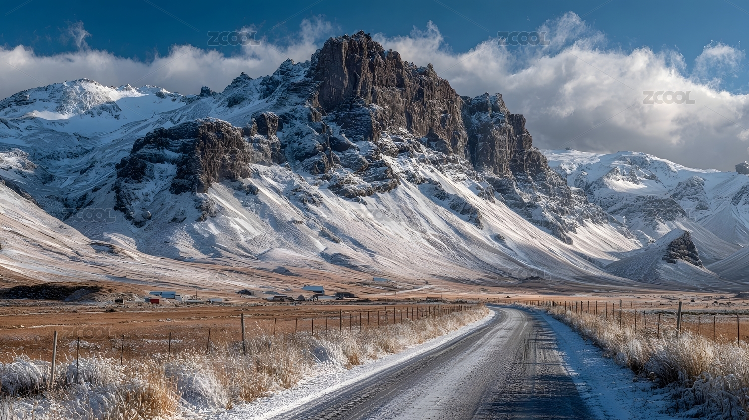 冰封山路与尖峰雪山