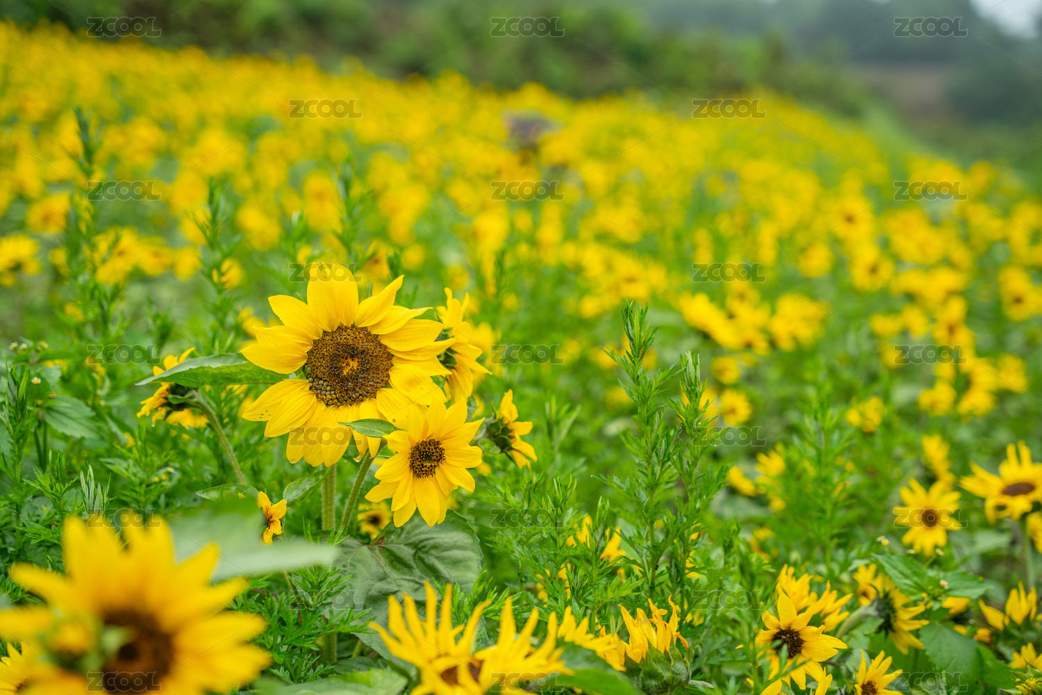 中国杭州市西湖区铜鉴湖秋日向日葵花海