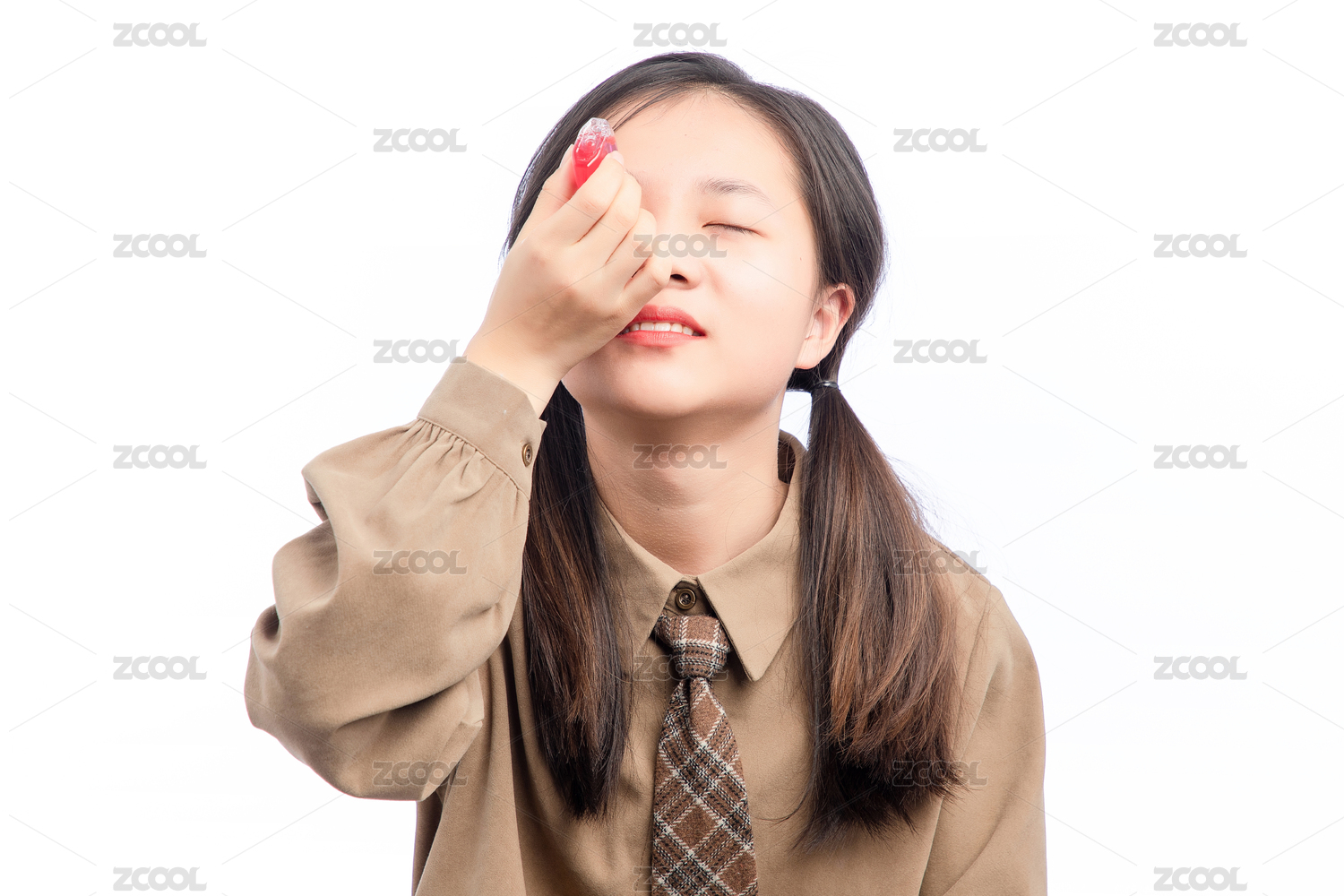 大吃特吃猪蹄块的亚洲可爱少女人像