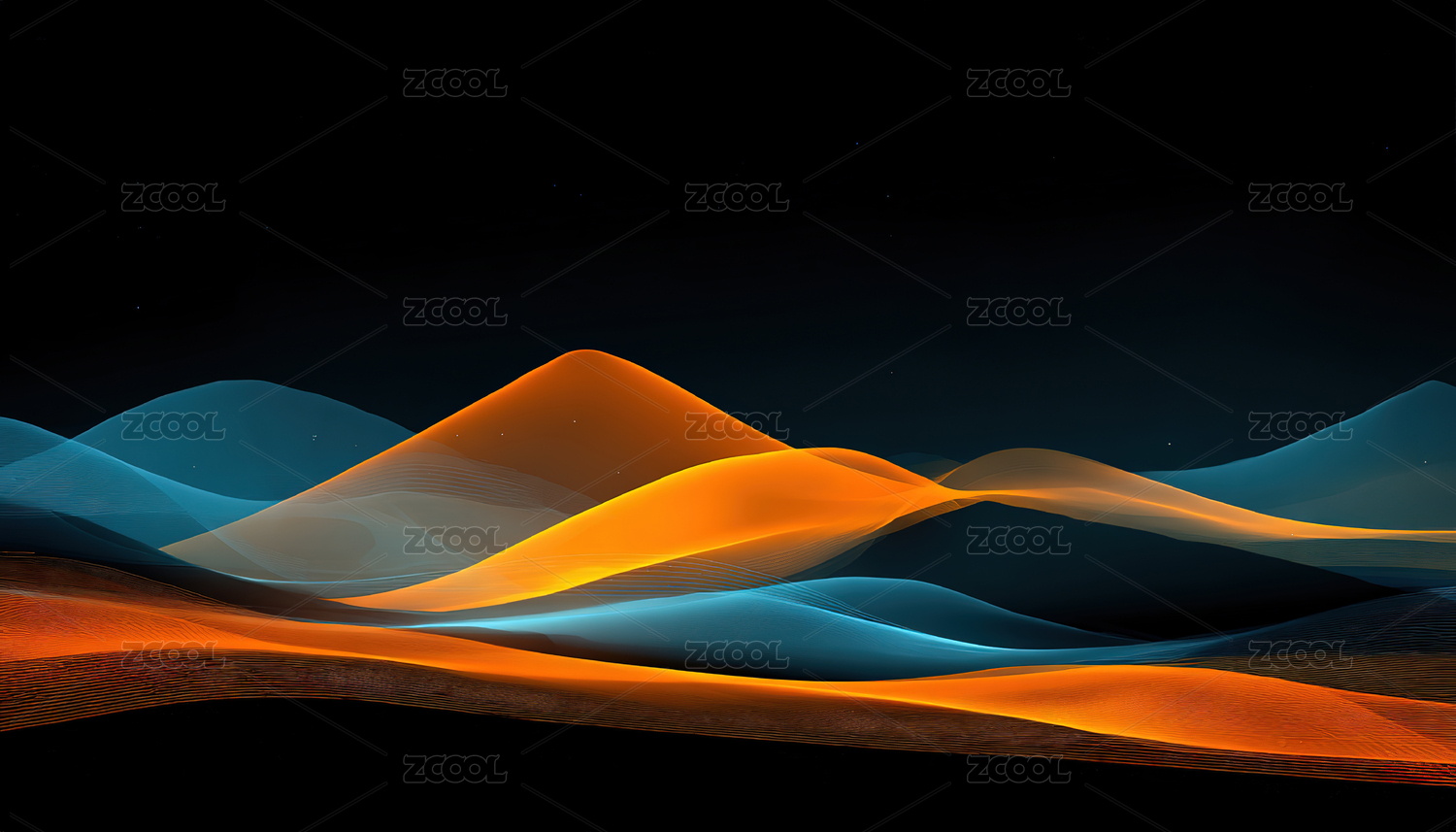 蓝橙渐变波浪抽象图案