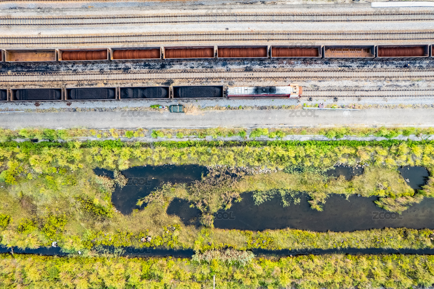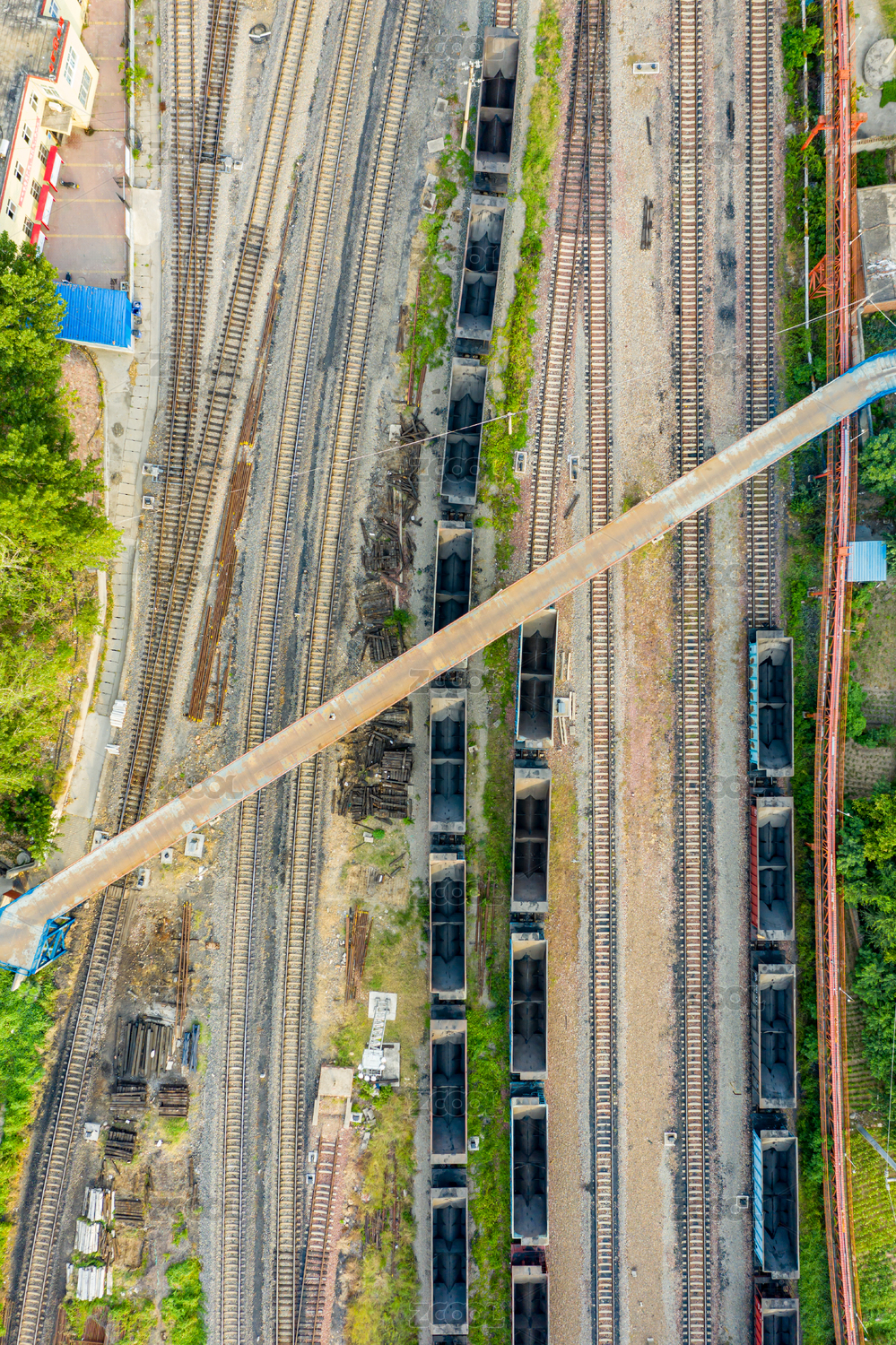 航拍河南平顶山燃煤发电厂配煤中心铁路站场