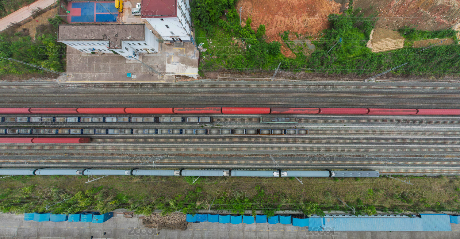 郑州北站铁路编组站上行出发场铁轨货运列车