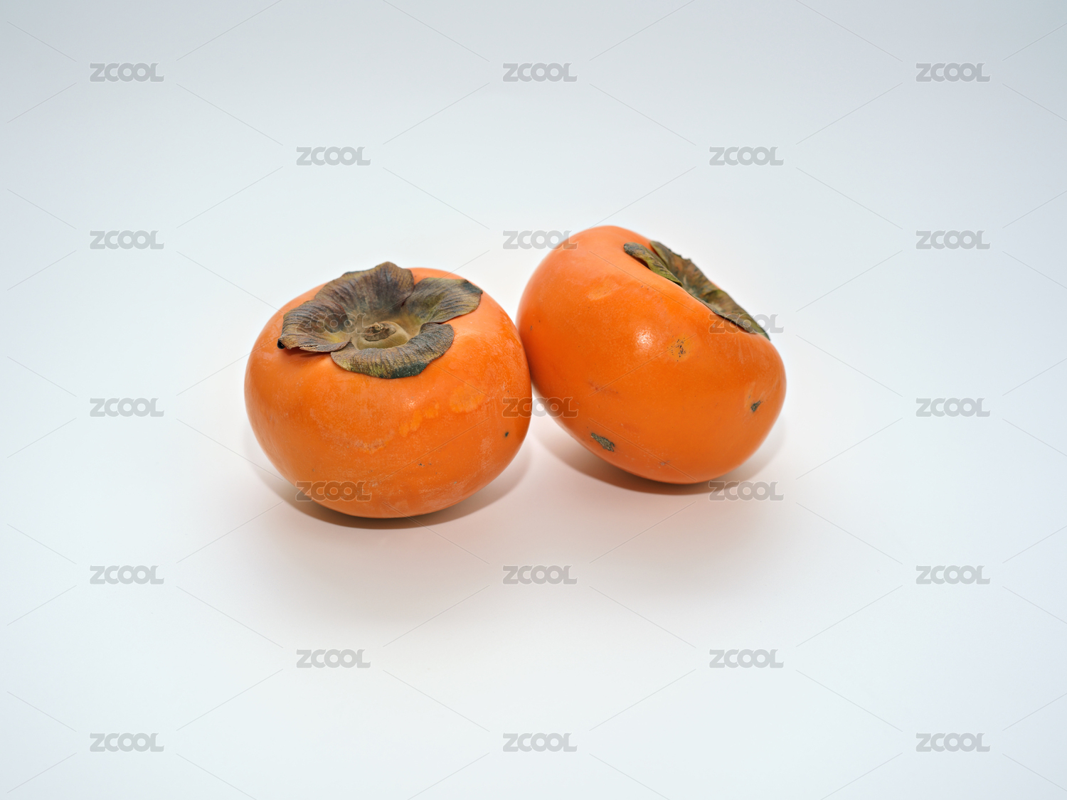 白色背景上摆放着一个新鲜采摘的柿子水果
