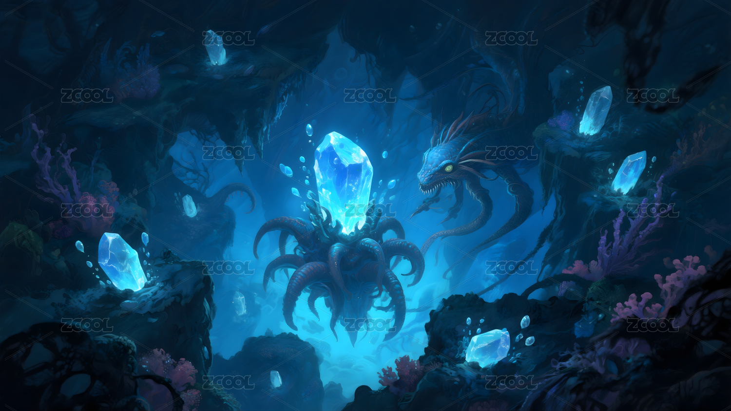数码科技玻璃金色花朵奇幻场景抽象海报背景