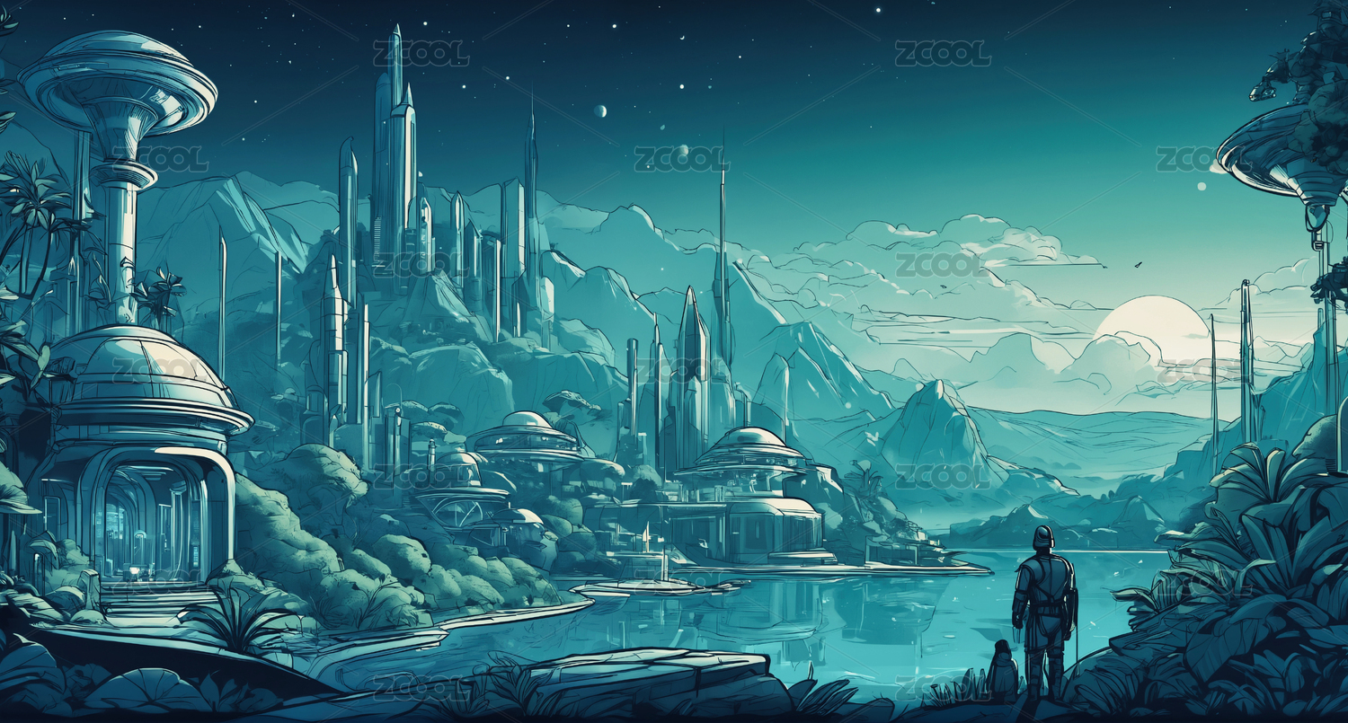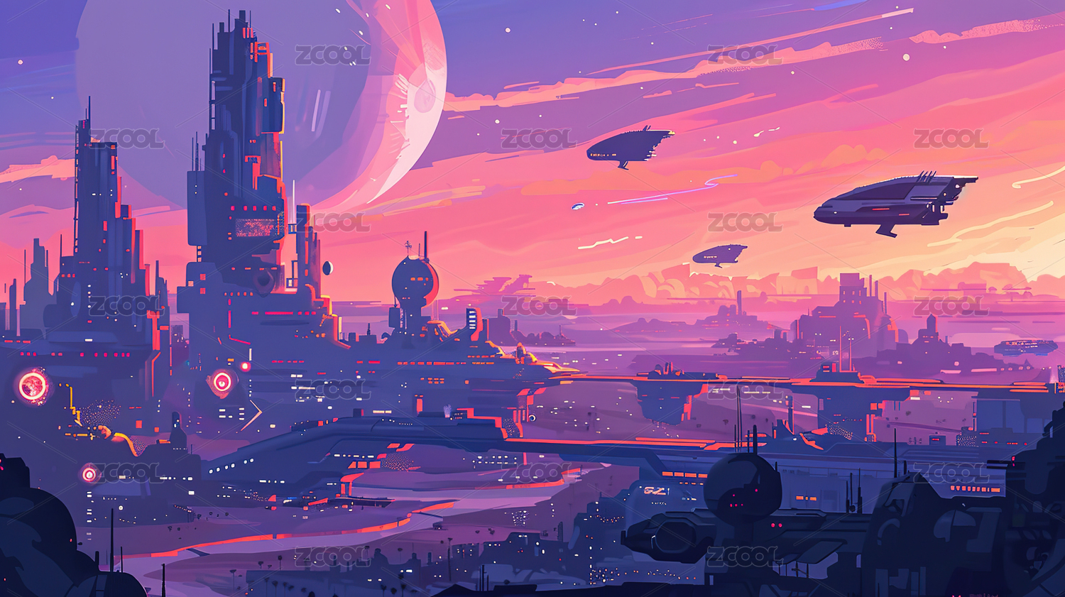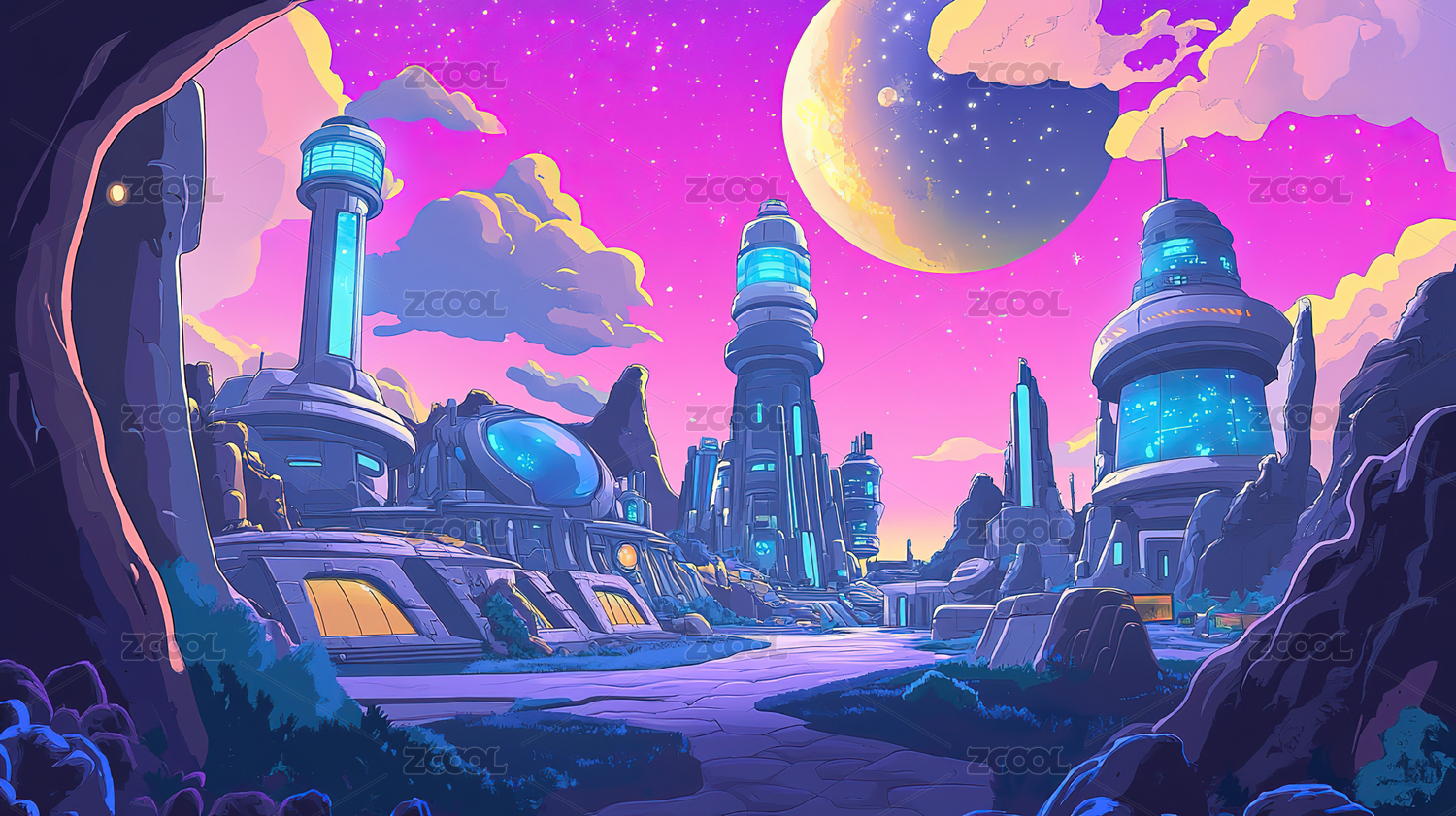 场景,科幻场景,游戏原画,原画场景,影视场景概念设计,影视美术,风景,傍晚,外星球,绘画