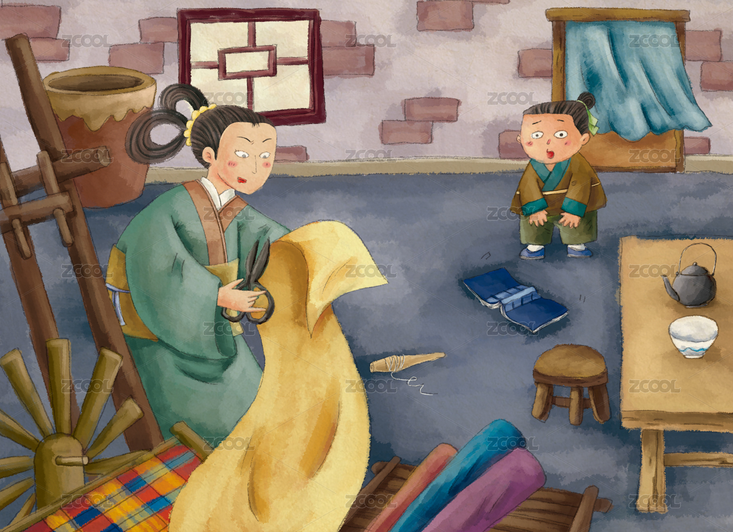 儿童插画成语故事铁杵成针