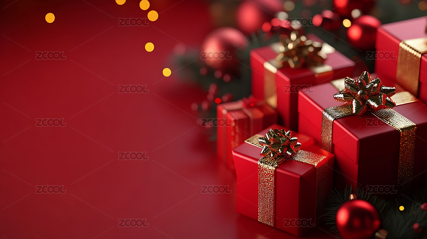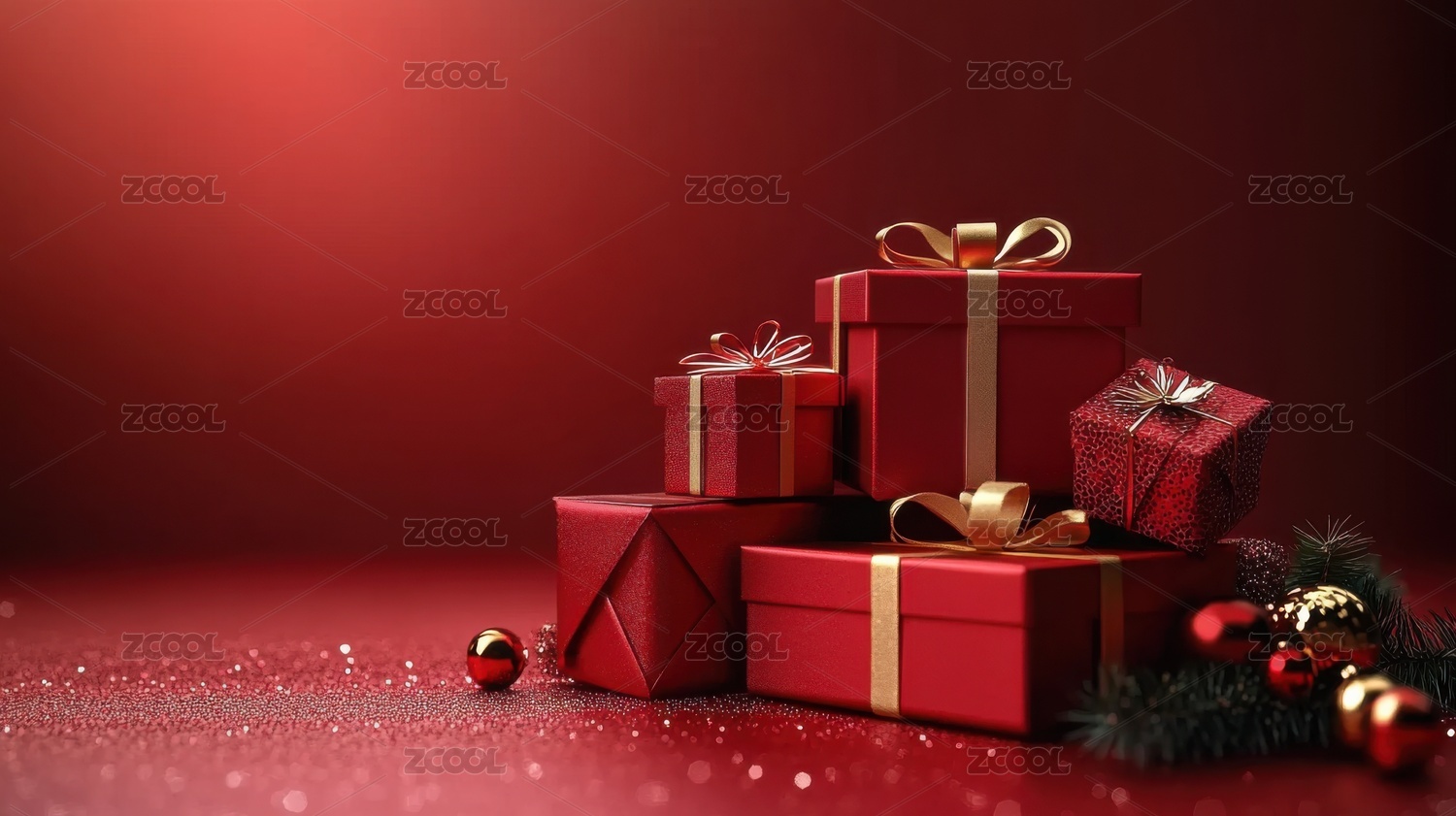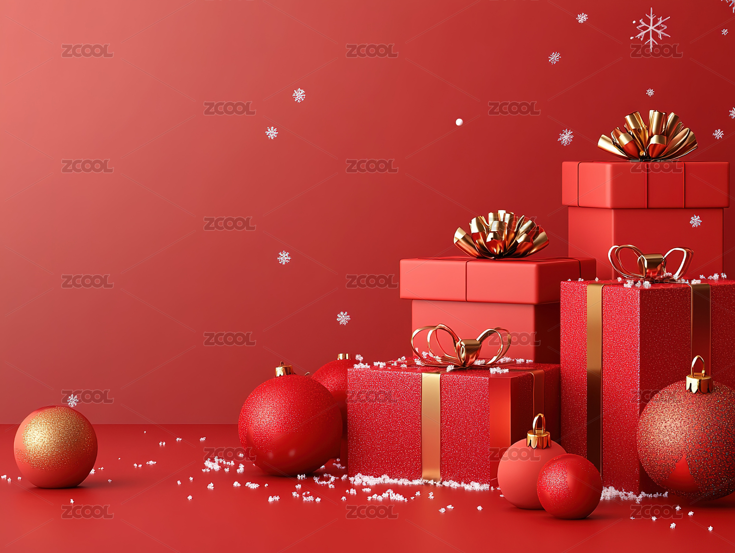 无人,AI数字艺术,圣诞节,圣诞装饰,背景,红色,节日,圣诞树,圣诞礼物,装饰